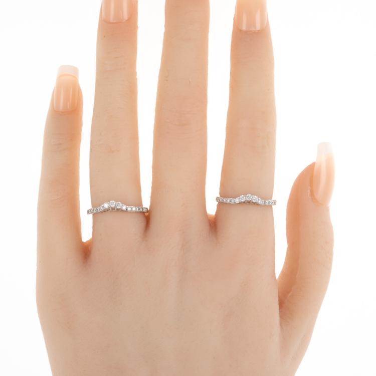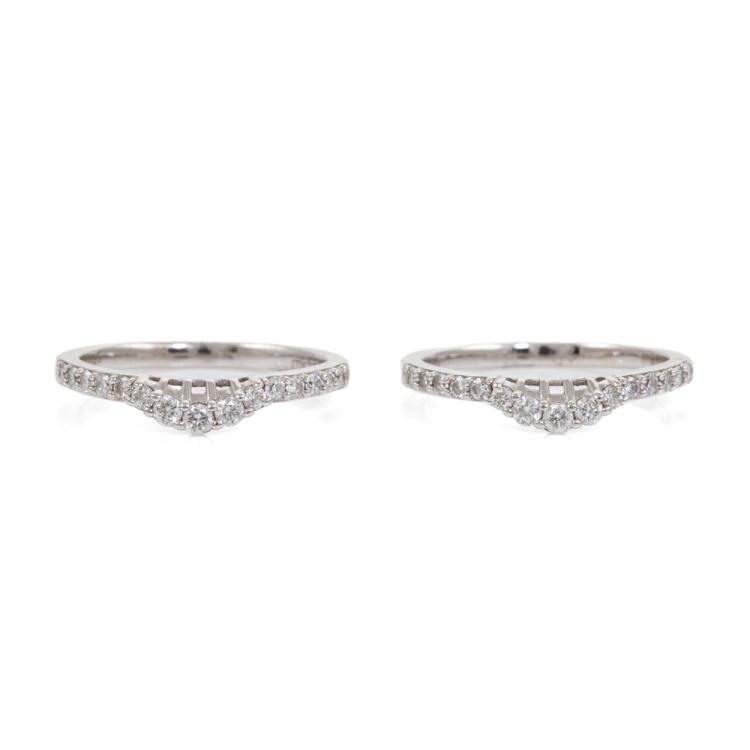 A Pair of Michael Hill Half Hoop Diamond eternity rings with round Natural Diamonds totalling 0.50ct. (Estimated grading: I-J SI.) 18ct white gold. Ring size: K. Band width: 1.60mm - 1.75mm. Weight: 3.7g. (Pre-owned)