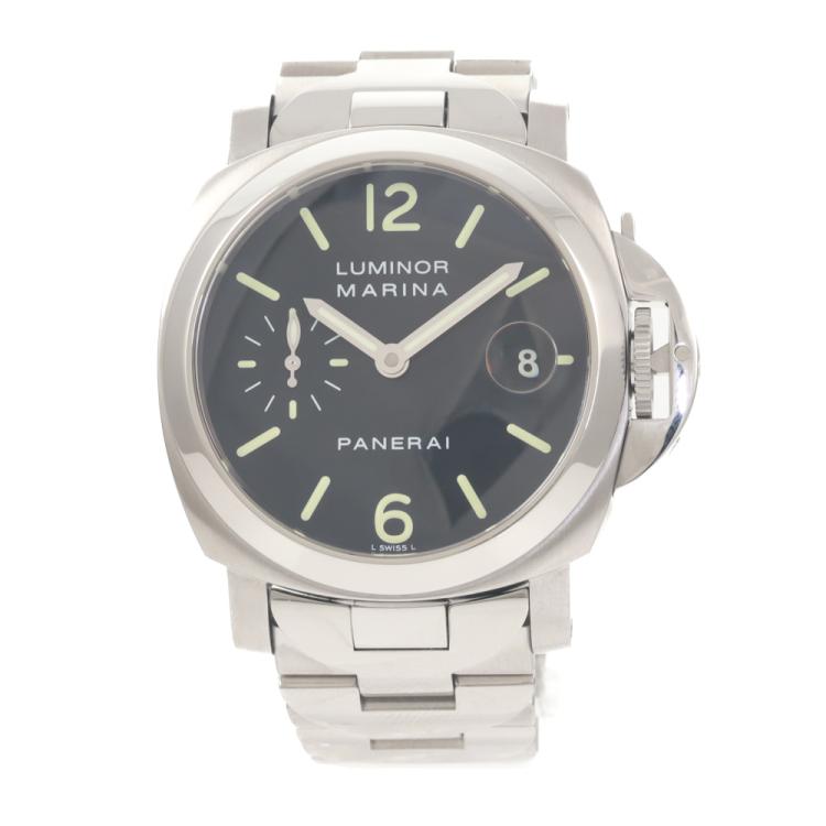 Panerai Luminor Marina stainless steel automatic mens watch. Black dial, small second, date, case diameter: 40mm, wrist size: 16cm, Swiss made. Ref# PAM00050/OP6560. With Panerai stainless steel bracelet and clasp. With Certificate of Authenticity and Panerai case. 3 month FSA warranty. (Pre-owned)
