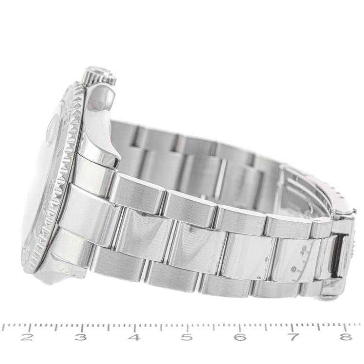 Rolex Oyster Perpetual Date Yacht Master stainless steel and platinum automatic mens watch. Silver dial, date, case diameter: 40mm, wrist size: 17.5cm, Swiss made. Ref# 16622. Circa: 2002. With Rolex stainless steel Oyster bracelet and clasp. With Certificate of Authenticity, Rolex International Service Guarantee card dated 31/03/2014 and Rolex box. 3 month FSA warranty. (Pre-owned)
