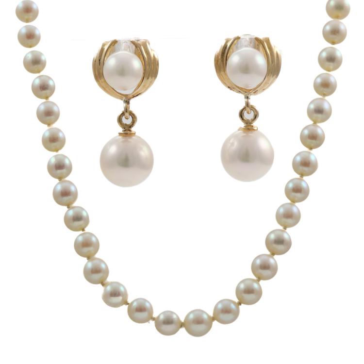Set of Akoya Pearl Necklace and Pearl