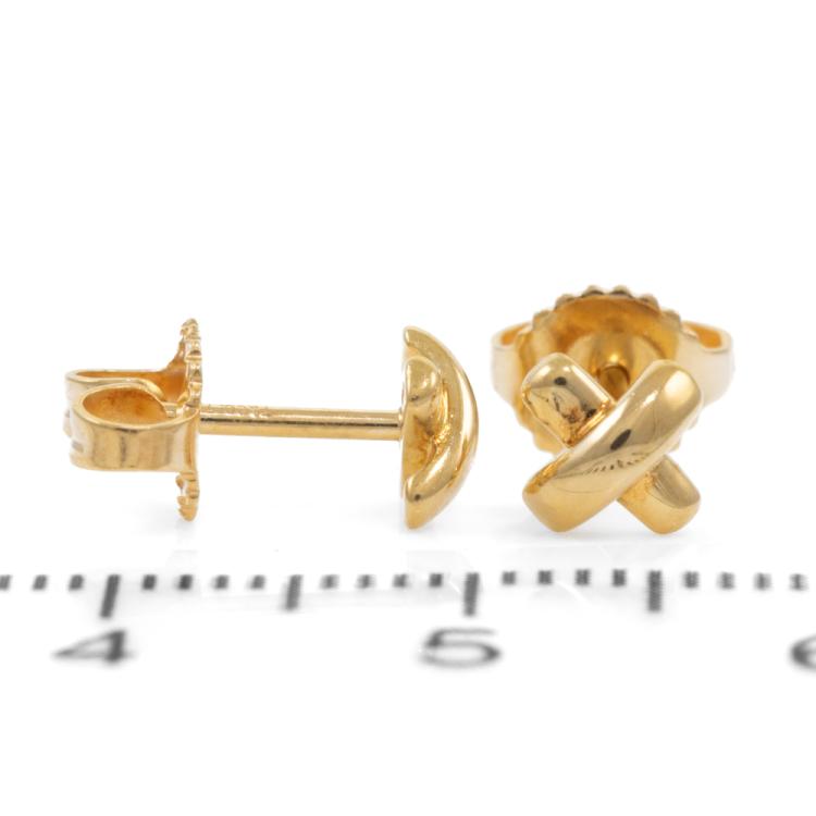 Tiffany & Co Cross Stitch earrings. Size: 5mm. 18ct yellow gold with 18ct yellow gold Tiffany & Co backs. Weight: 1.4g. (Pre-owned)