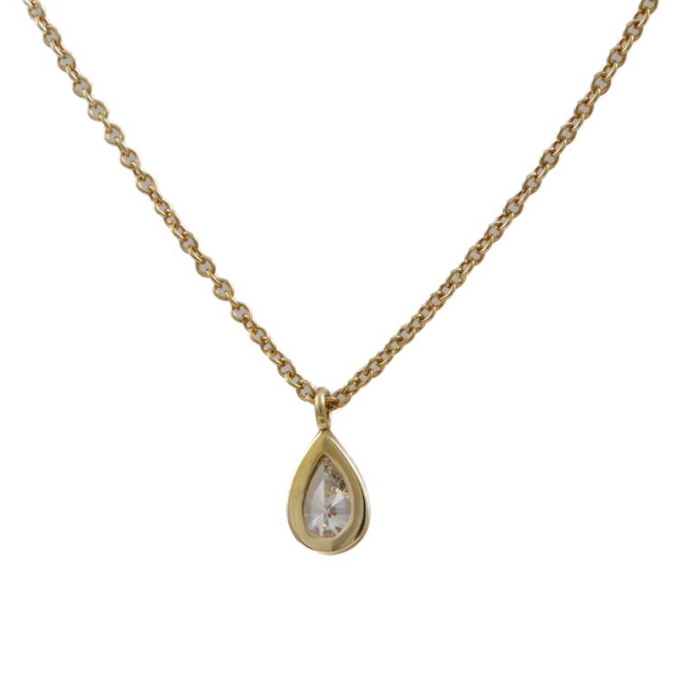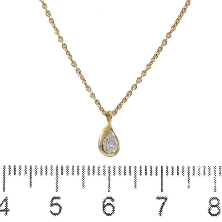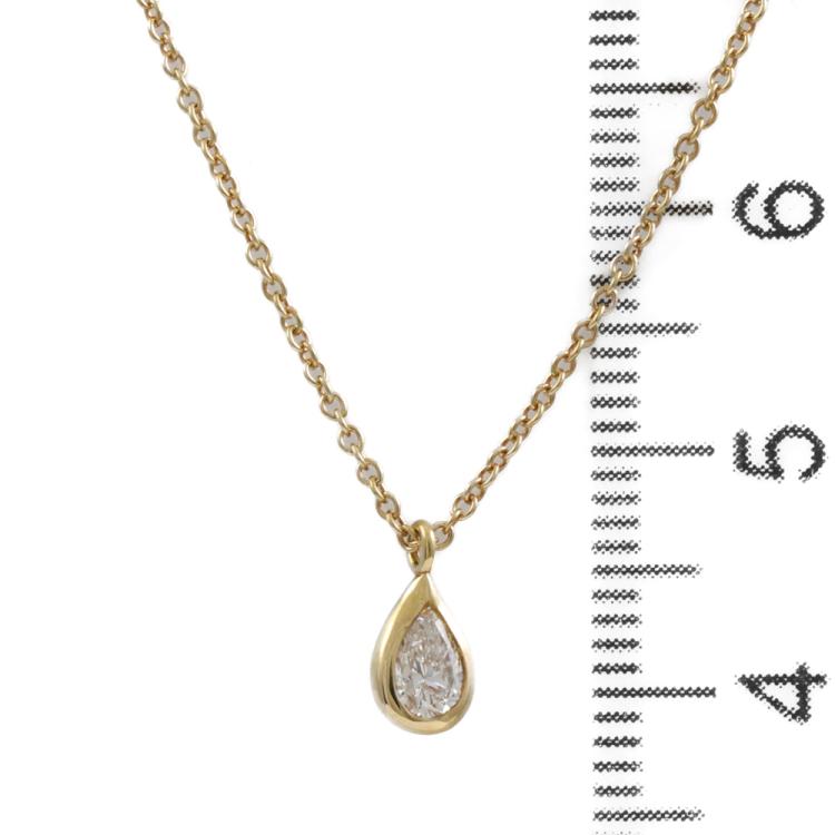 Tiffany & Co Elsa Peretti Diamond By The Yard Diamond necklace with a pear shape Natural Diamond of approximately 0.31ct (Estimated grading: H VS). 18ct yellow gold with Tiffany & Co. 18ct yellow gold chain. Length: 41.0cm. Weight: 2.0. With Tiffany & Co Box (Pre-owned)