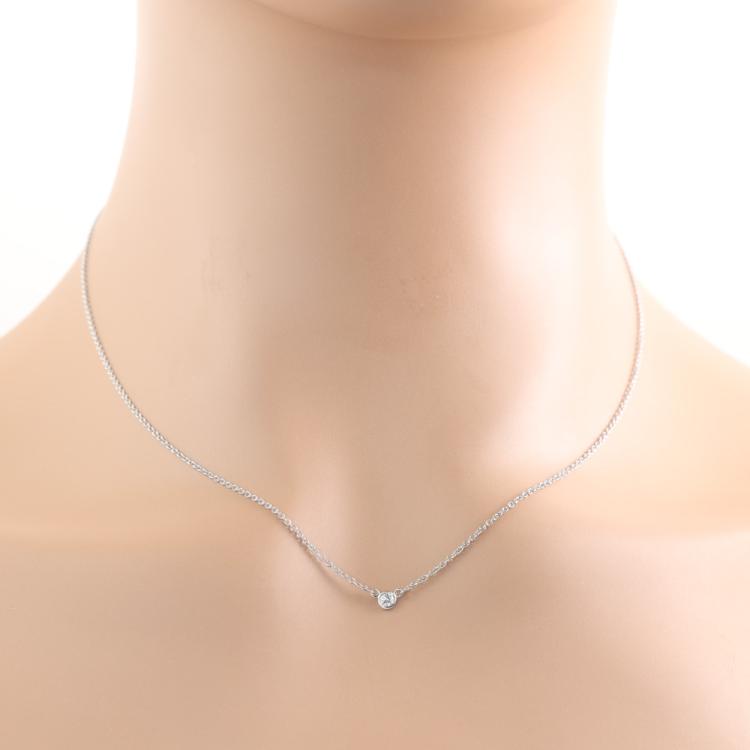 Tiffany & Co Elsa Peretti Diamonds by the Yard single Diamond pendant with a round Natural Diamond of approximately 0.08ct. Platinum 950 with Tiffany & Co Platinum 950 attached chain. Length: 41.5cm. Weight: 2.5g. (Pre-owned)