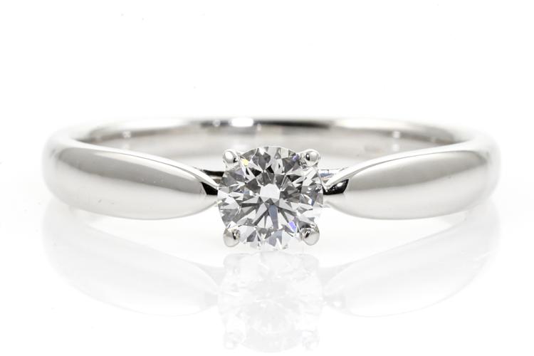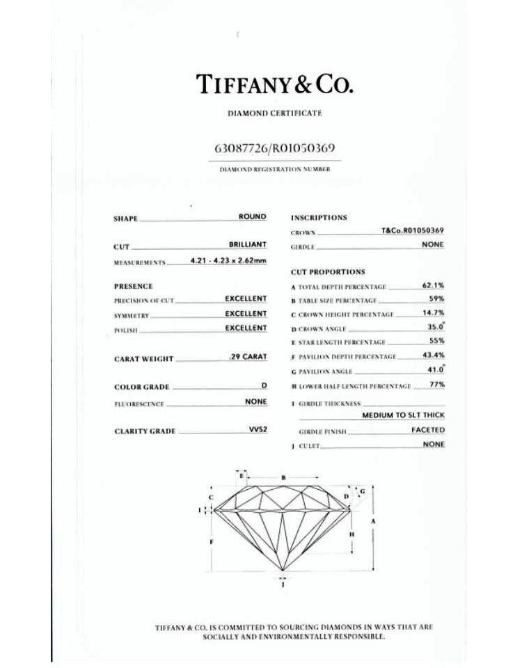Tiffany & Co. Harmony Diamond ring with round brilliant Diamond of 0.29ct (Estimated grading: D VVS2). Platinum-950. Ring size K, - ring resizing is not recommended. Weight: 3.4g. With Tiffany & Co Diamond Certificate and Tiffany & Co box. (Pre-owned)