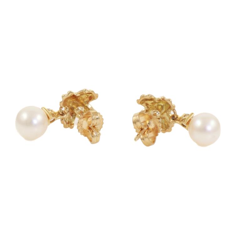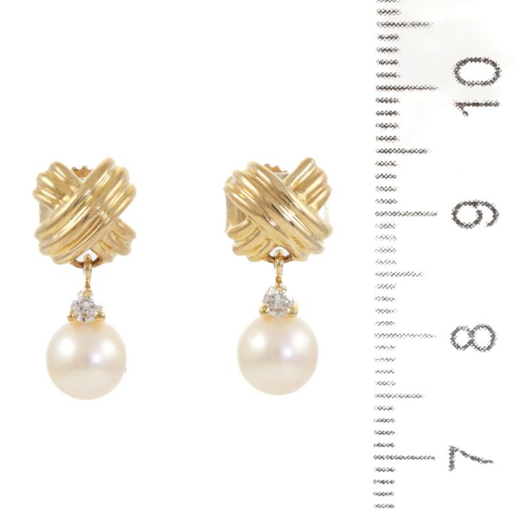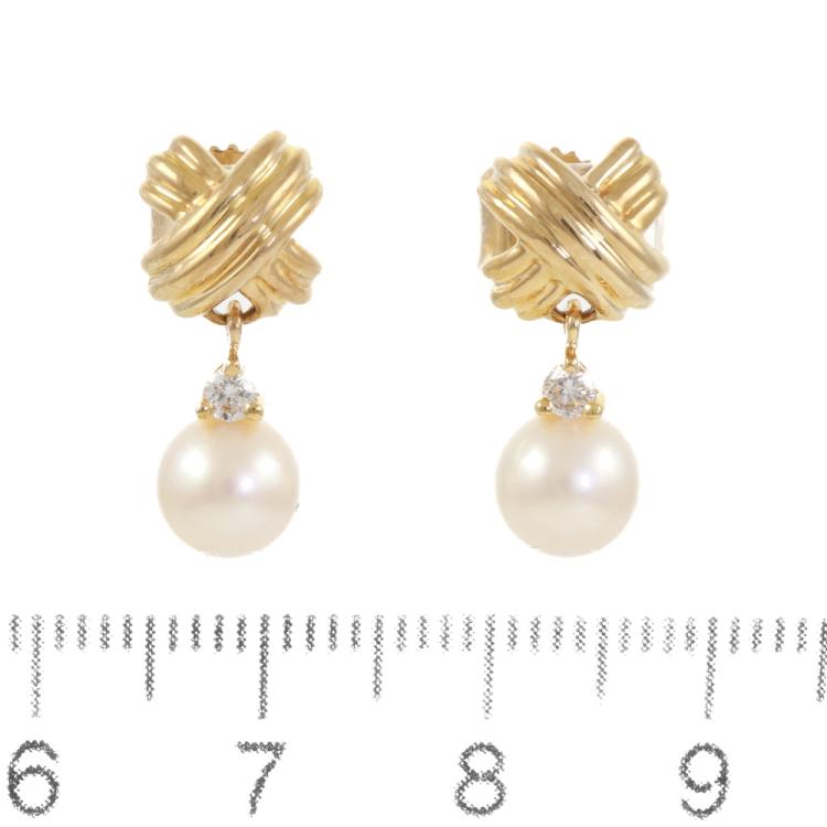Tiffany & Co. Signature X Pearl and Diamond earrings with Akoya Pearls of 6.6mm & 6.7mm and round Natural Diamonds totalling approximately 0.10ct. 18ct yellow gold. Weight: 4.0g. (Pre-owned)