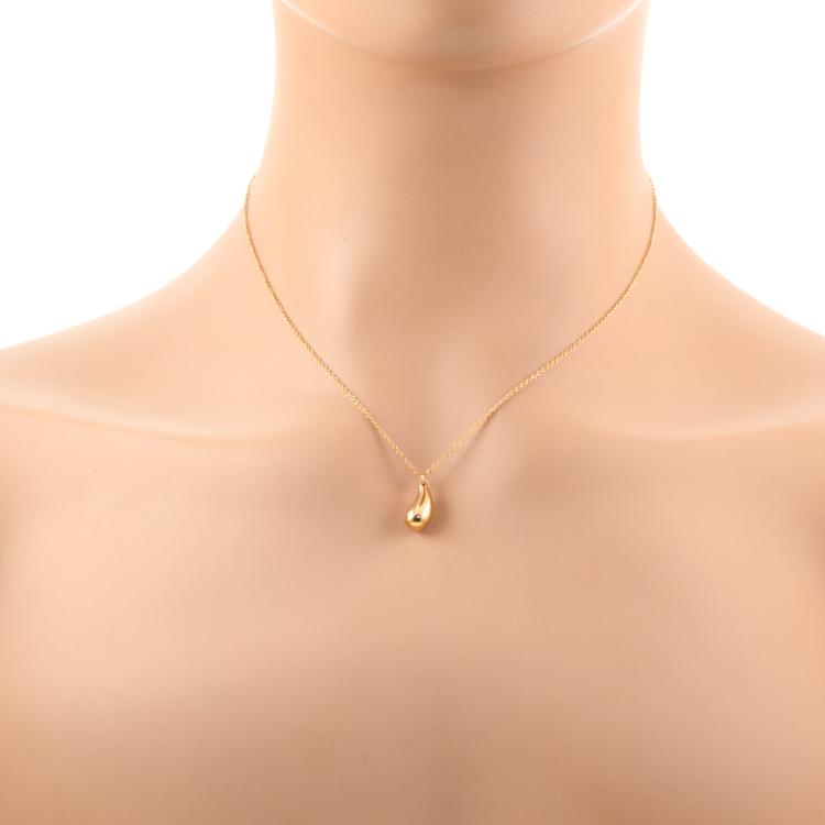 Tiffany & Co Elsa Peretti Teardrop pendant. 18ct yellow gold with 18ct yellow gold Tiffany & Co 40cm chain. Motif size: 12.9mm. Weight: 4.7g. With Tiffany & Co box. (Pre-owned)