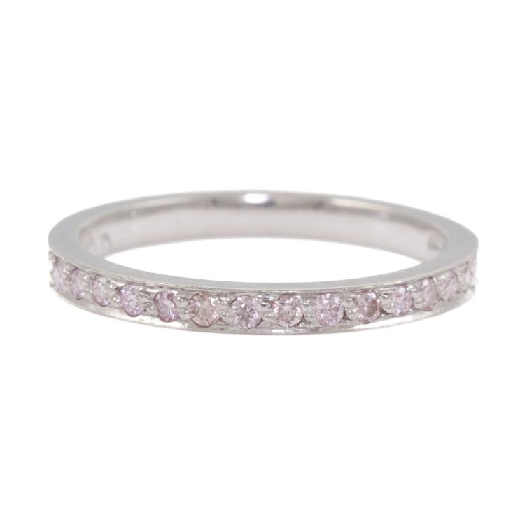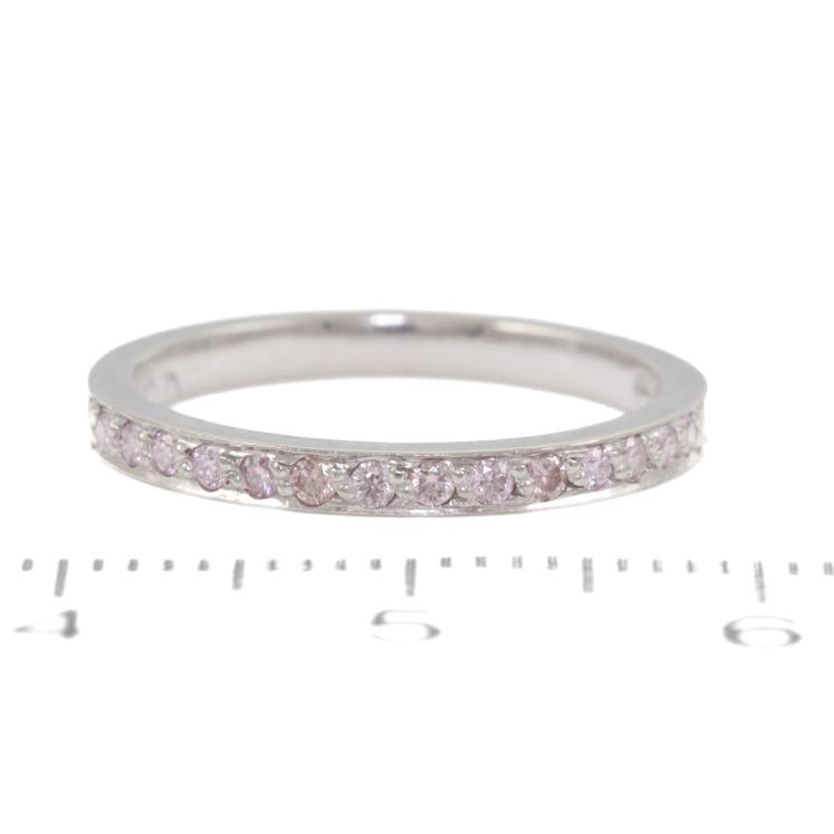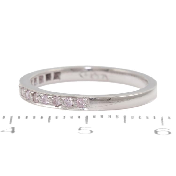 Diamond half hoop eternity ring with 14 round Natural Pink Diamonds totalling 0.14ct (Estimated grading: Light Purplish Pink SI). Platinum 950. Ring size J. Band width: 2.0mm. With purchase invoice dated 24/2/06. Weight: 2.8g. (Pre-owned)