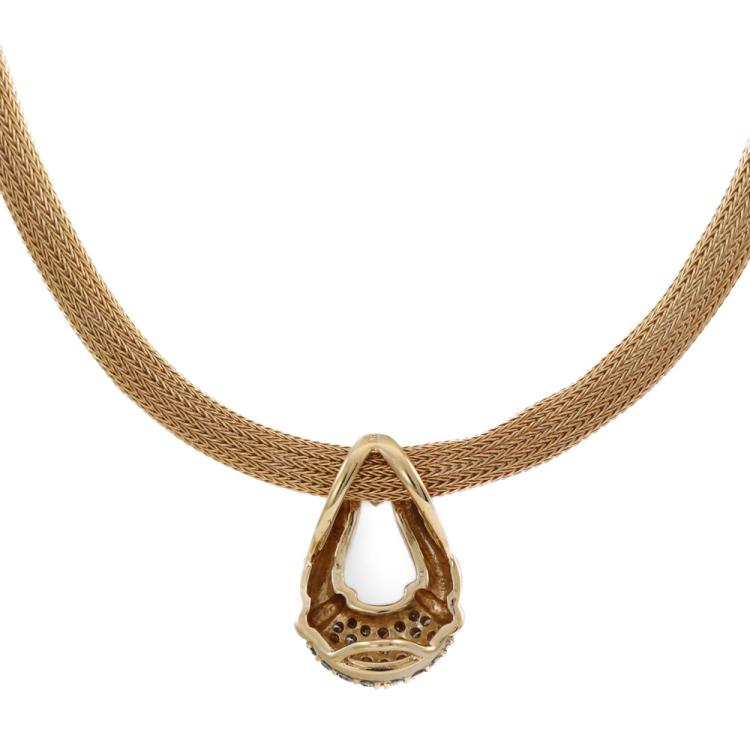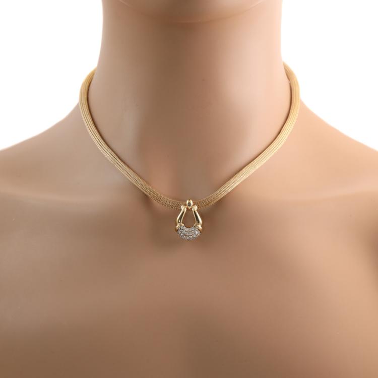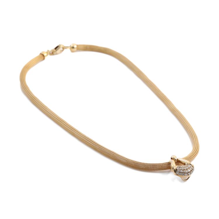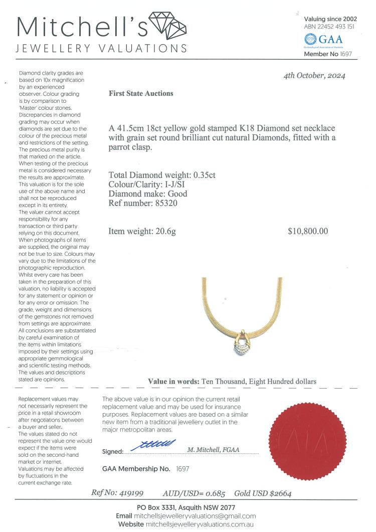 Diamond pendant with round Natural Diamonds totalling 0.35ct (Estimated grading: I-J SI). 18ct yellow gold with 41.5cm 18ct yellow gold mesh chain. Weight: 20.6g. With Certificate #419199. (Pre-owned)