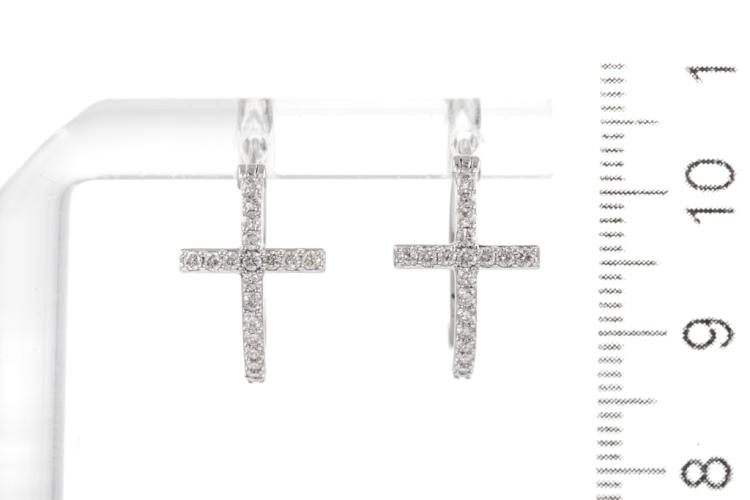 Diamond hoop Cross earrings with 38 round Natural Diamonds totalling 0.36cts (Estimated grading: H-I SI). 14ct white gold. Width: 16.0mm. Length: 18.0mm. Weight: 2g. (New).