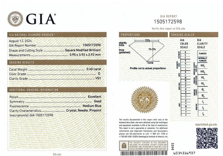 A loose princess cut Natural Diamond of 0.40ct (with GIA summary report graded as D VS1 #1505172598