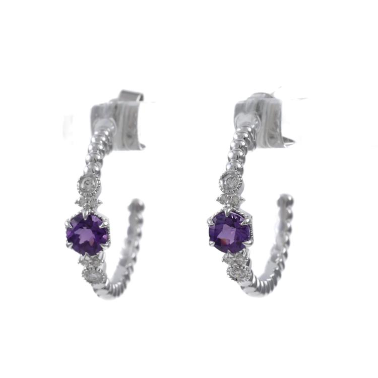 Amethyst and Diamond earrings with round Natural Amethyst totalling 0.48ct and round Natural Diamonds totalling 0.10ct. 14ct white gold. Weight: 3.0g. (New)
