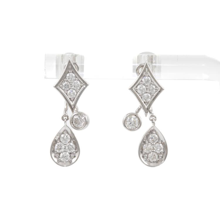 Diamond detachable earrings with round natural Diamonds totalling 0.50cts (Estimated grading: H SI). 18ct white gold with 18ct white gold & silicon backs. Weight: 2.9g. (Pre-owned)