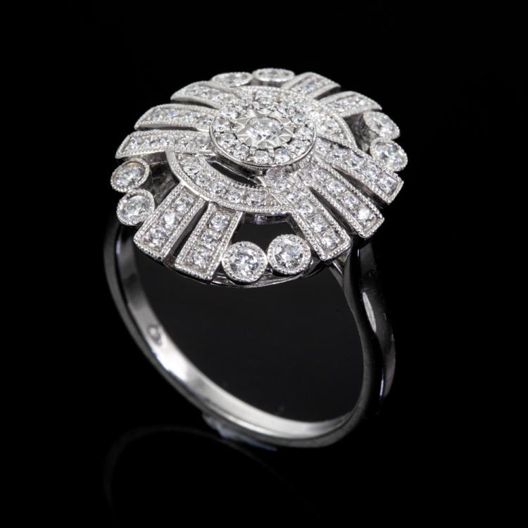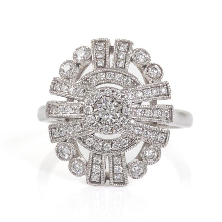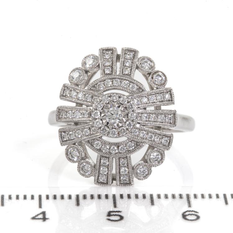 Diamond dress ring with round Natural Diamonds totalling 0.50ct (Estimated grading: H-I SI). 18ct white gold. Ring size K1/2. Weight: 5.3g. (As New)