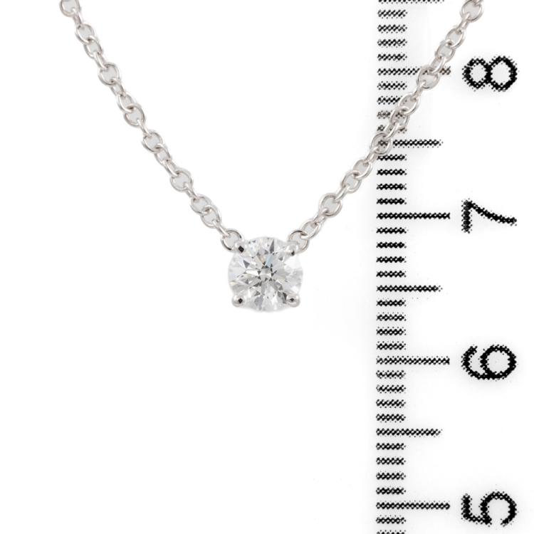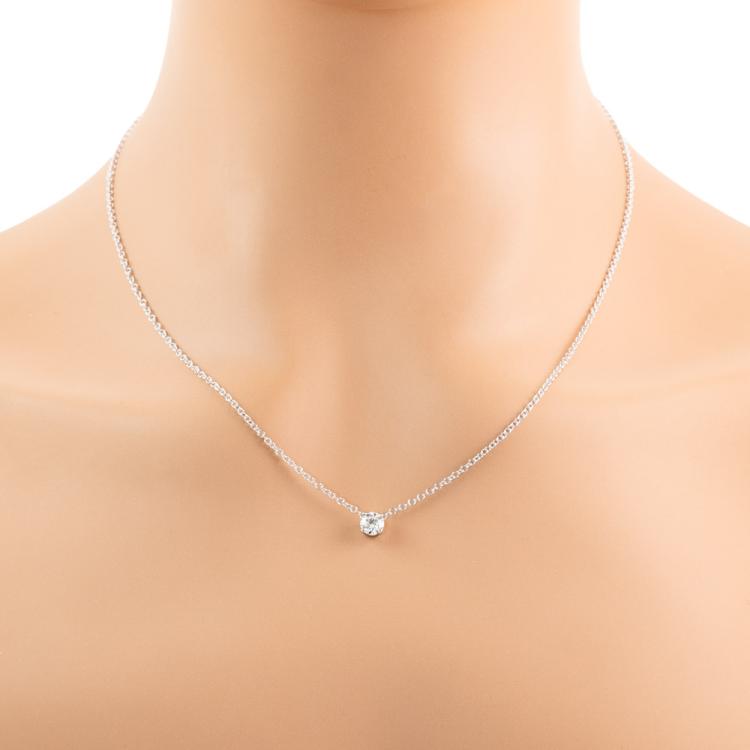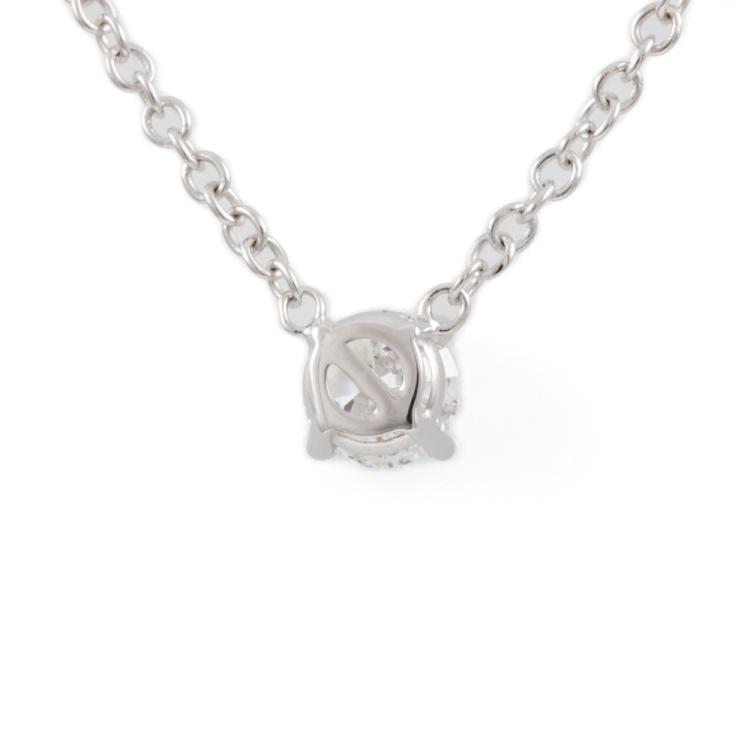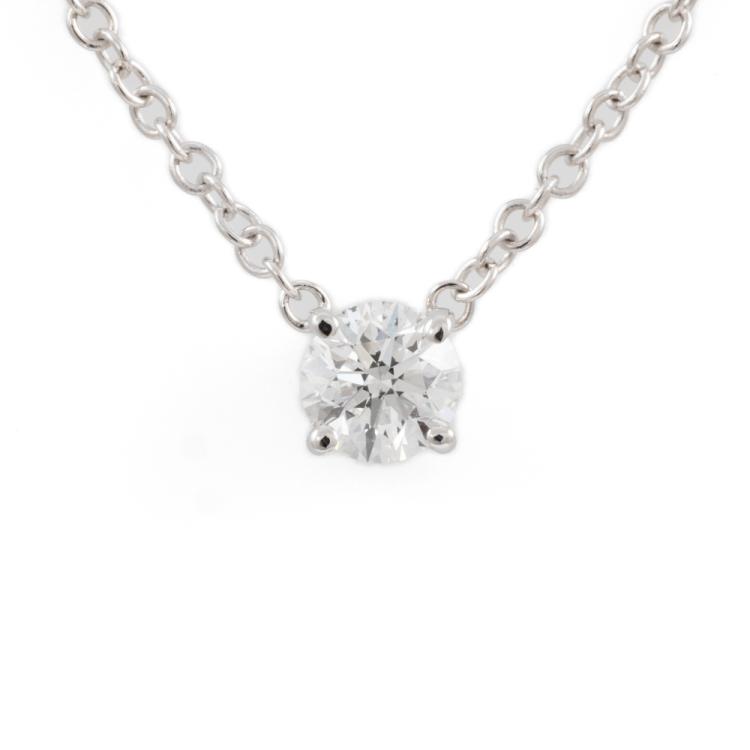 Diamond pendant with round brilliant cut Natural Diamond of 0.50ct (with GIA summary report graded as E SI1 #7442816237). 18ct white gold with 18ct white gold chain attached. Length: 45cm. Weight: 2.8g. (New)