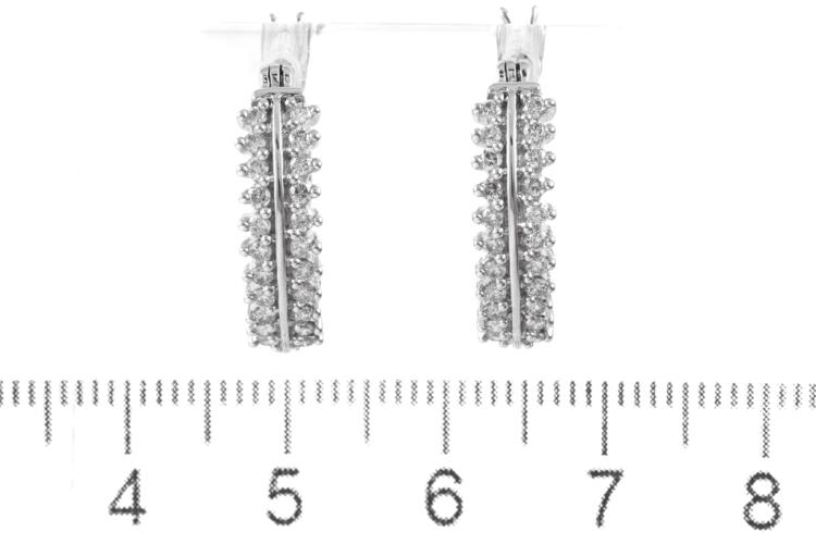 Diamond hoop earrings with 44 round Natural Diamonds totalling 0.50ct (Estimated grading: J-K SI). 14ct white gold. Weight: 4.1g. (New)