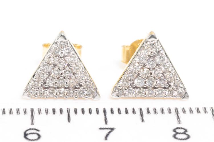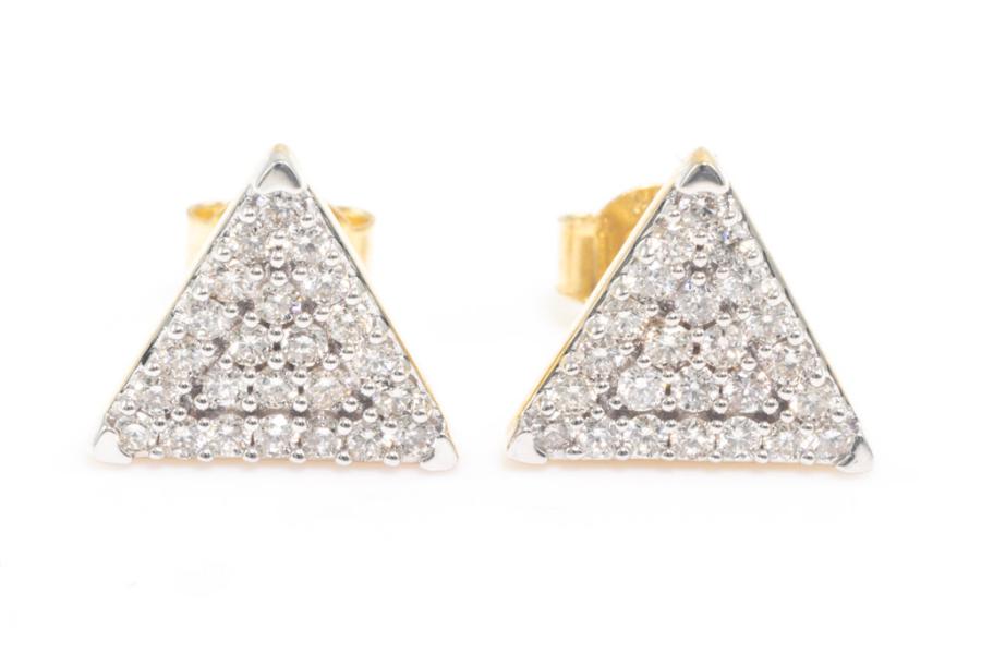 Diamond earrings with 48 round Diamonds totalling 0.53ct. (Estimated grading: H-I SI). 14ct yellow gold. Weight: 2.7g. (New)^