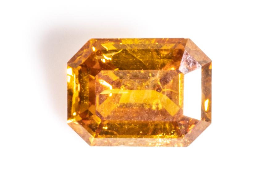 A loose emerald cut Natural Diamond of 0.54ct (with GIA report graded as Natural Fancy Yellowish Orange Even #2205402165, FSA estimated clarity grade: P2). (New)