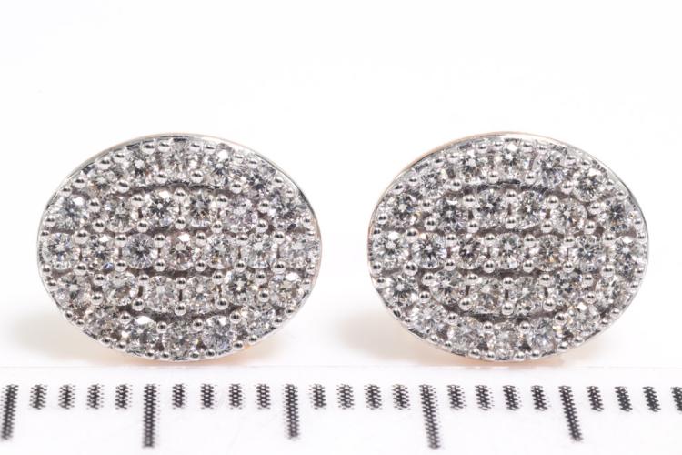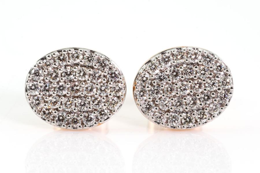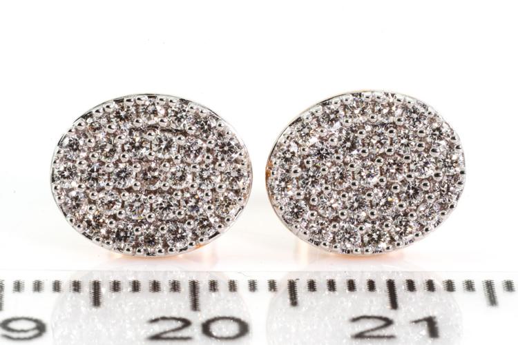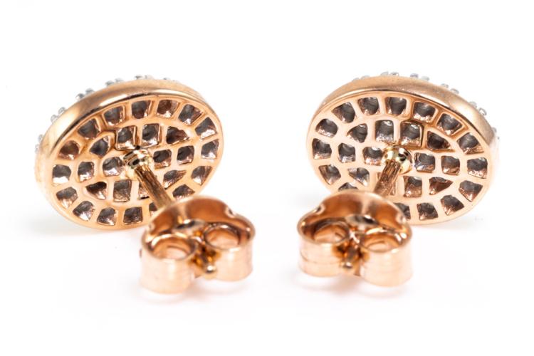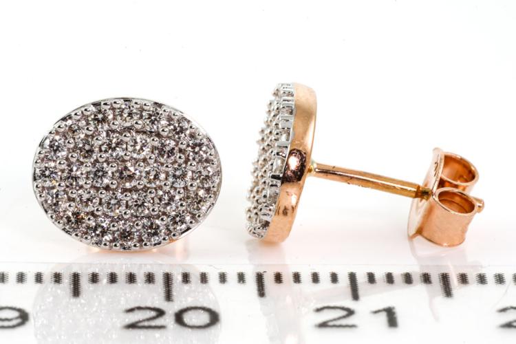 Diamond earrings with 58 round natural diamonds totalling 0.55ct. (Estimated grading: H SI). 14ct rose gold. Weight: 2.6g. (New)^