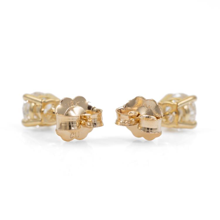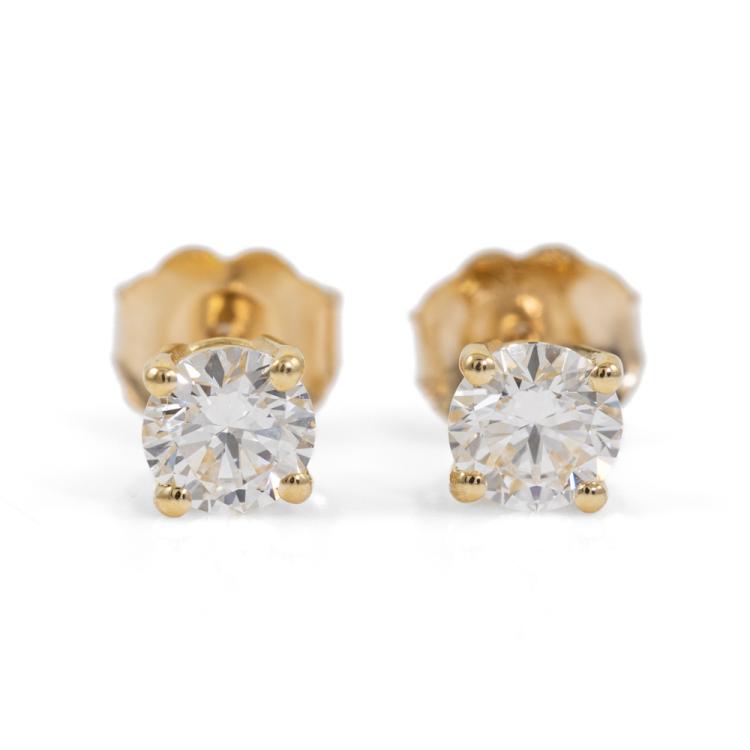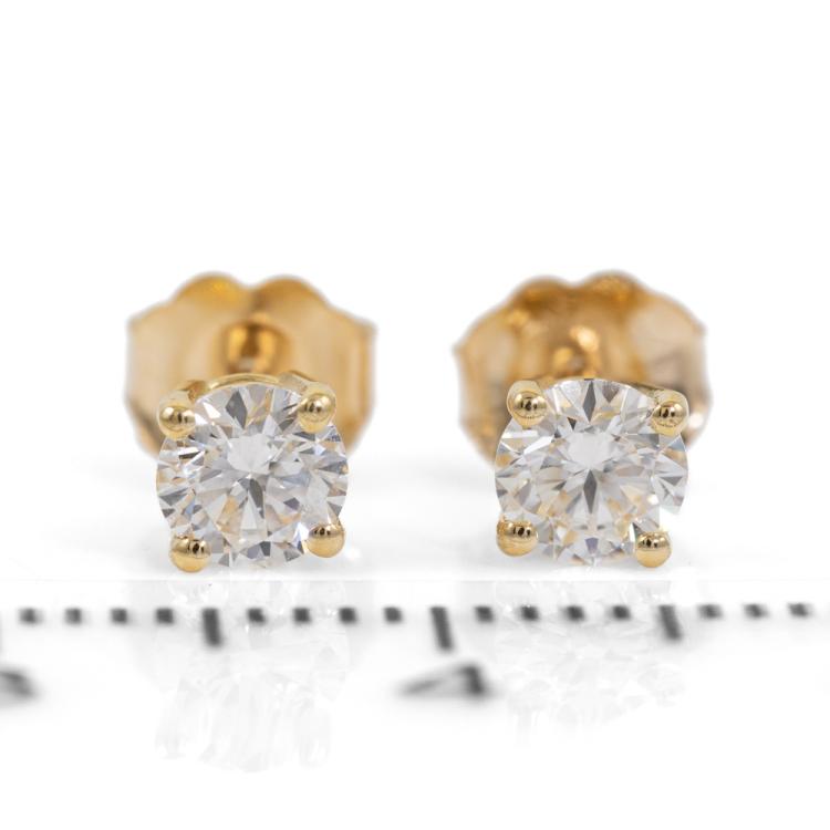 Diamond stud earrings with 2 round brilliant cut natural Diamonds totalling 0.61ct (with GIA Summary Reports graded as E Internally Flawless #5476584770, 6485140656). 18ct yellow gold. Weight: 0.9g. (New)