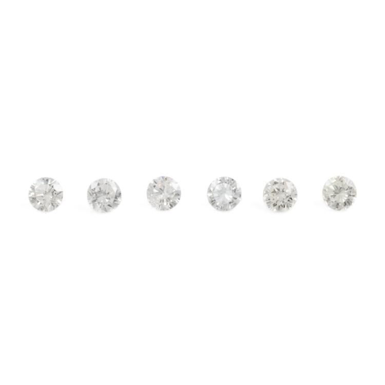 A loose parcel of 6 round brilliant cut Natural Diamonds totalling 0.69ct (Estimated grading: H-I P1-2). Approximate size: 3.10mm. (Pre-owned)