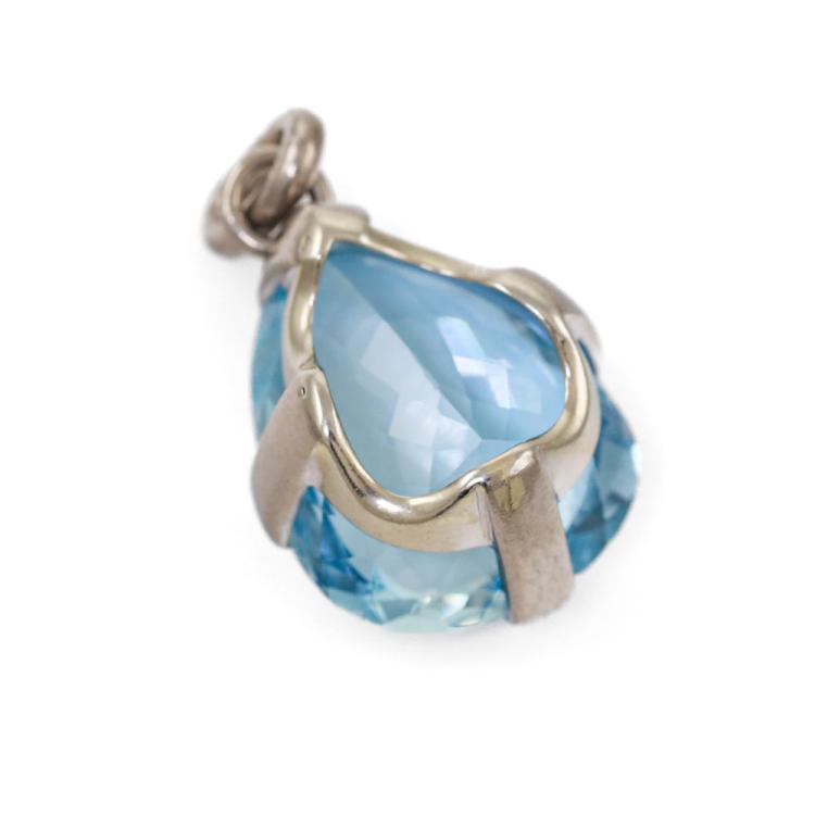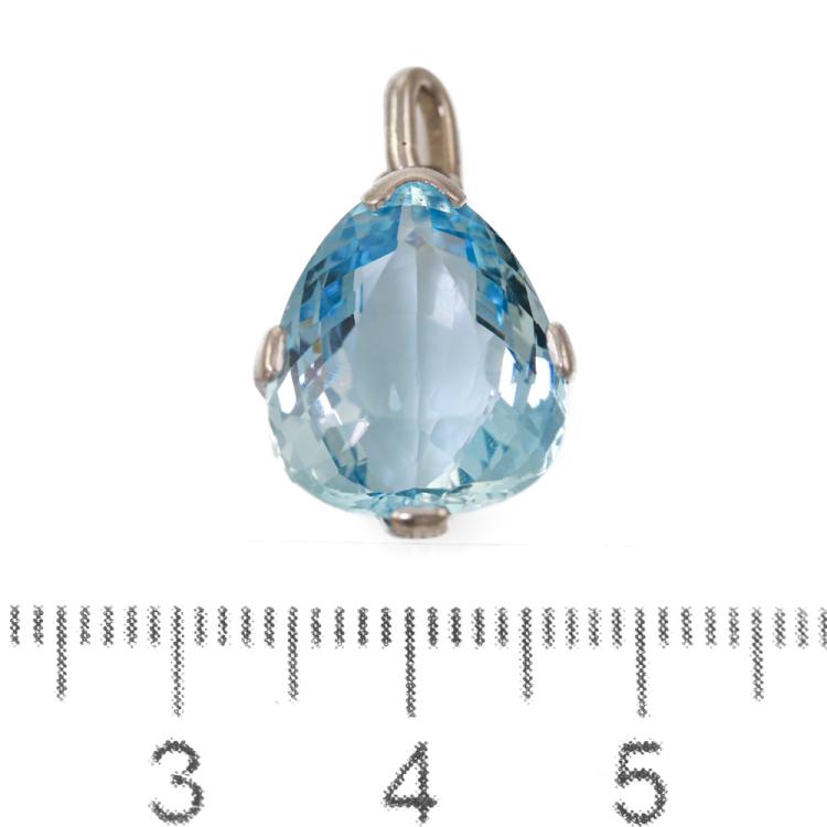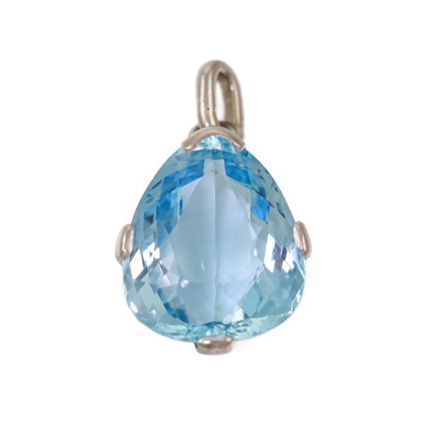 Aquamarine pendant with pear shape Natural Aquamarine of 10.00ct. 18ct white gold (XRF tested, not stamped. Copy of Valuation states 14ct). No chain provided. Weight: 4.4g. With a Copy of Valuation dated 18.08.1986. (Pre-owned)