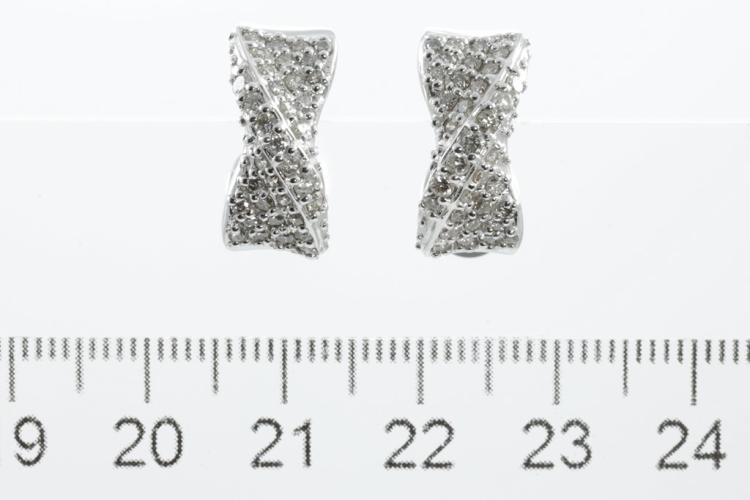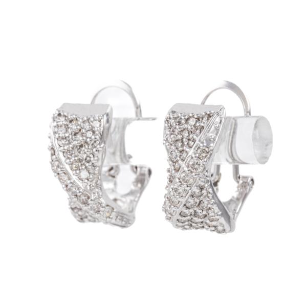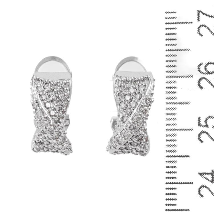 Diamond clip-on earrings (for pierced ears) with round Natural Diamonds totalling 1.00ct (Estimated grading: H SI). 18ct white gold. Weight: 7.9g. (Pre-owned)