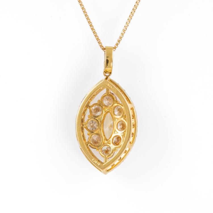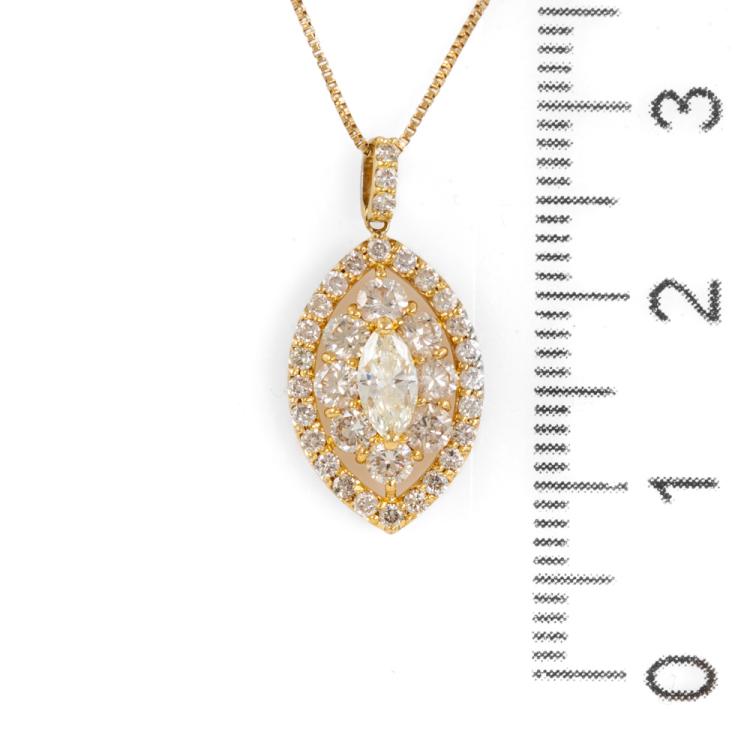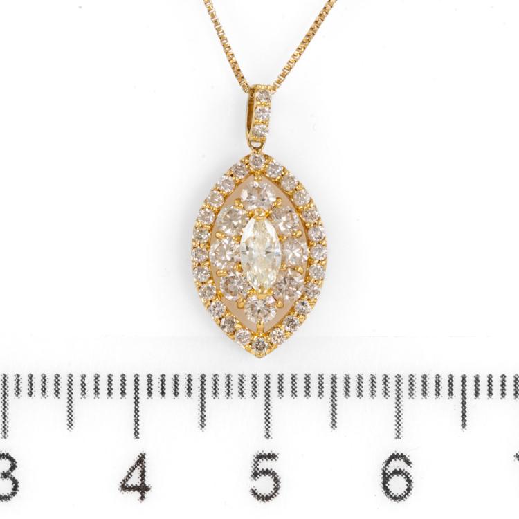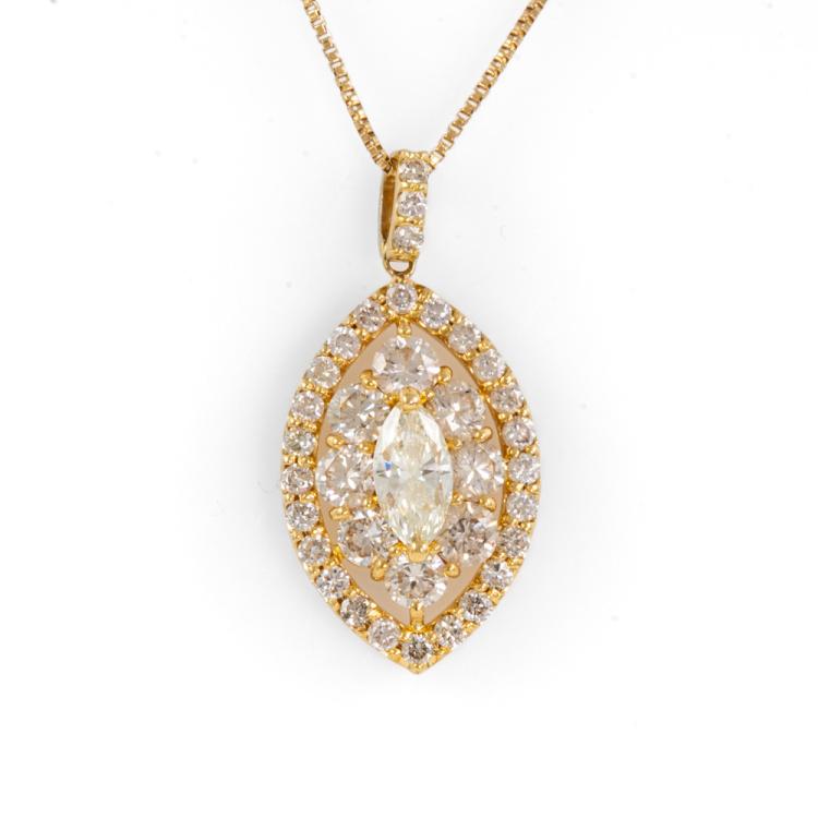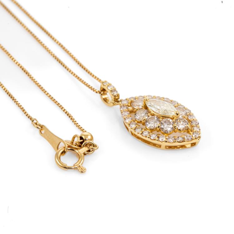 Diamond pendant with round & marquise cut Natural Diamonds totalling 1.00cts (Estimated grading: I-J SI). 18ct yellow gold with 46cm 18ct yellow gold chain. Weight: 2.7g. (Pre-owned)