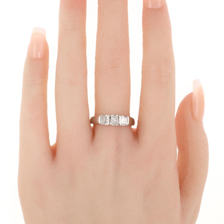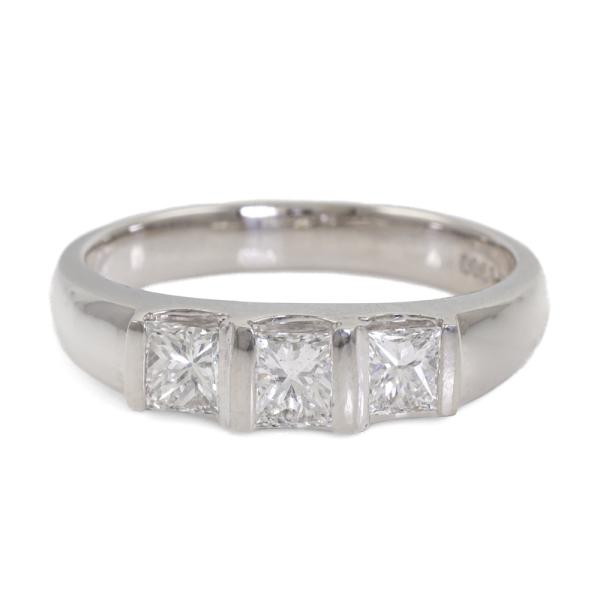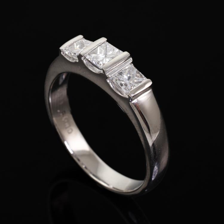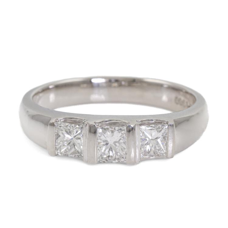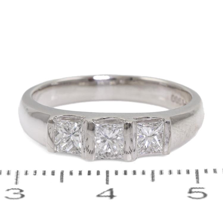 Diamond Ring with 3 princess cut Natural Diamonds totalling 1.00ct (Estimated grading: F SI). Platinum - 900. Ring size: Q - ring resizing is not recommended. Weight: 7.6g (Pre-owned)