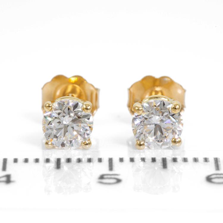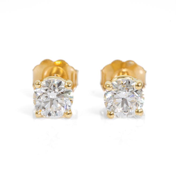 Diamond stud earrings with 2 round brilliant cut natural Diamonds totalling 1.00cts (both with GIA Summary Reports both graded as D VS1 #1489587967, 6485573047). 18ct yellow gold. Weight 1.1g (New)