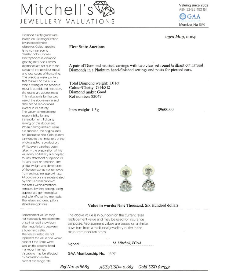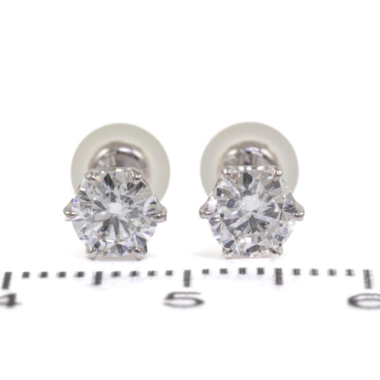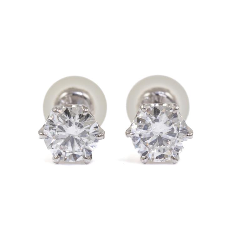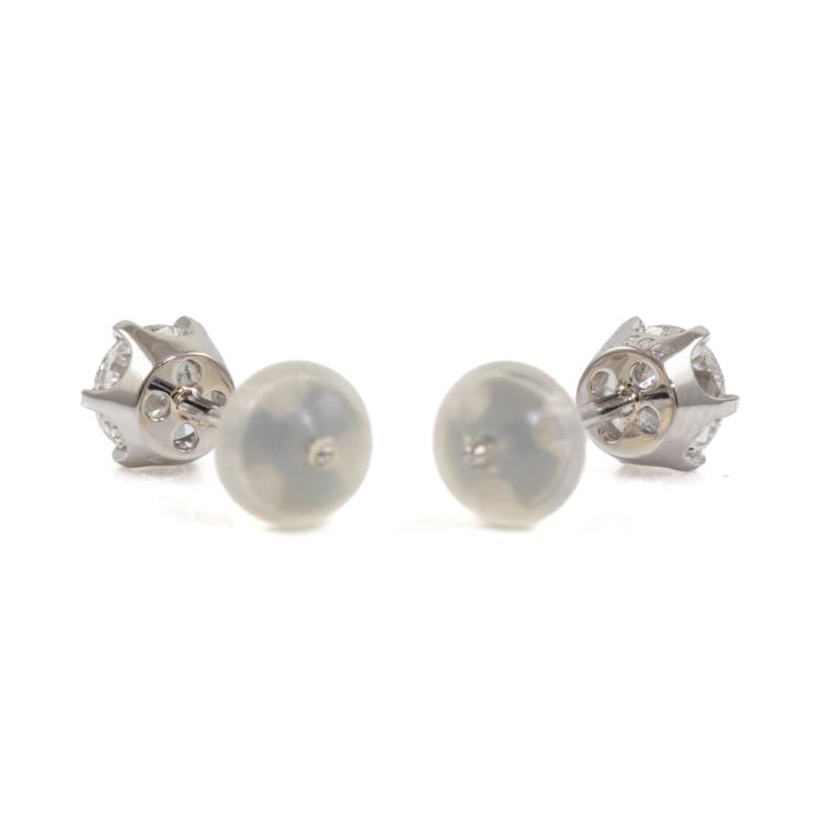 Diamond stud earrings with 2 round brilliant cut natural Diamonds totalling 1.01ct (Estimated grading: G-H SI2). Platinum 900 with platinum 850 & silicon backs. Weight: 1.5g. With Valuation Certificate #418683. (New)
