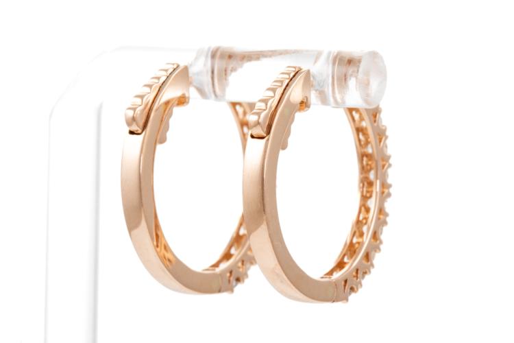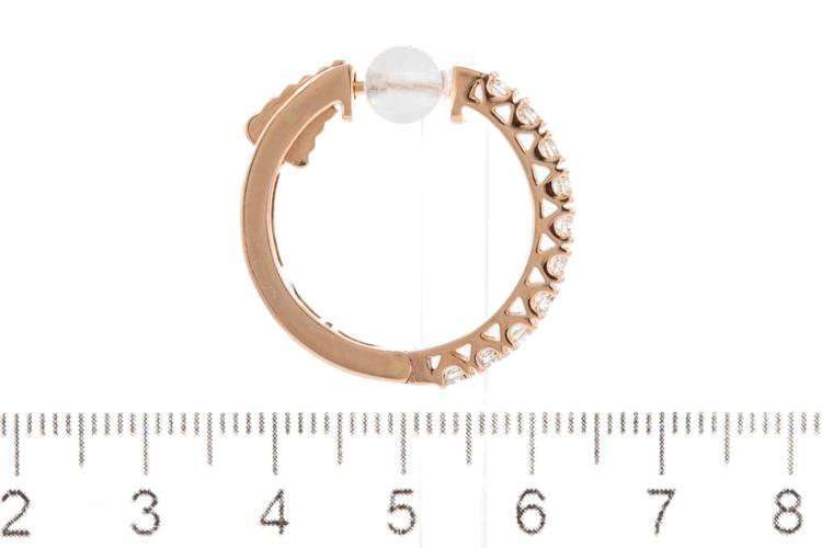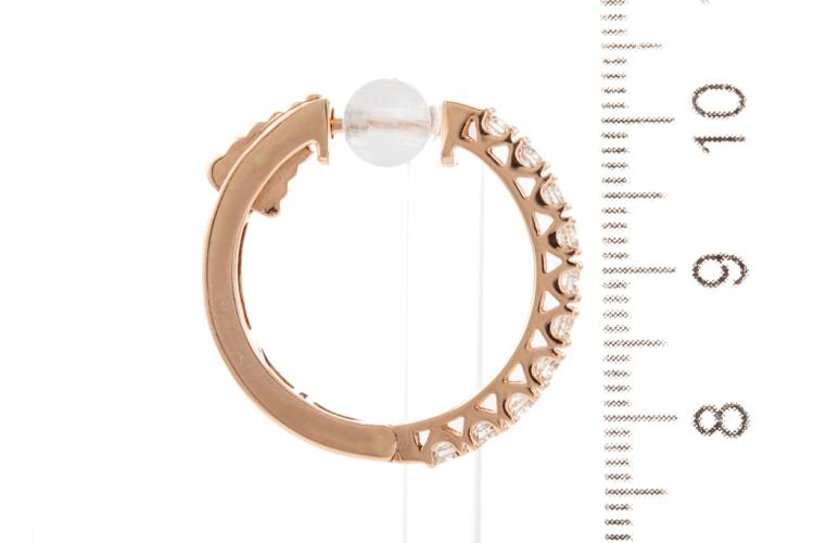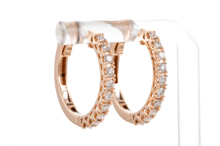 Diamond hoop earrings with 20 round Natural Diamonds totalling 1.05ct (Estimated grading: H-I SI). 14ct rose gold. Width: 25.0mm. Length: 25.0mm. Weight: 8.3g. (New).