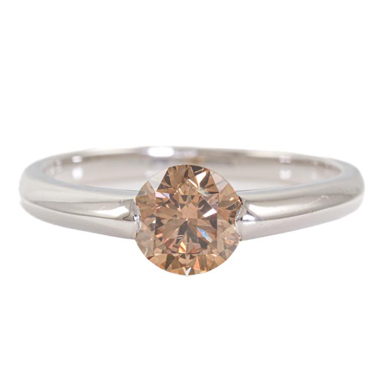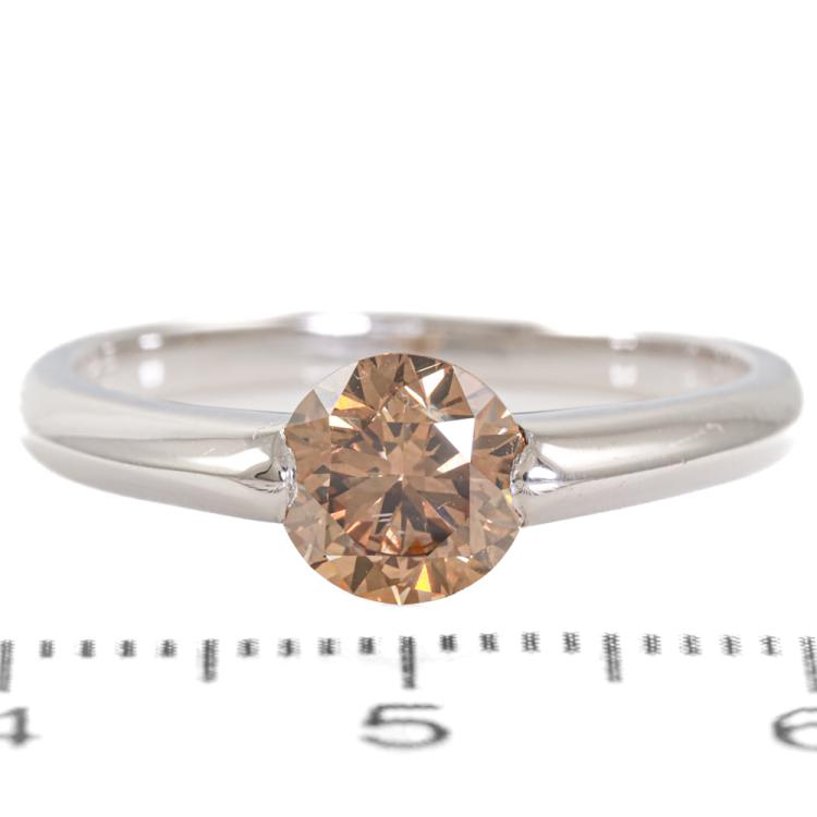 Diamond ring with round Natural Diamond of 1.06ct. (Estimated grading: Fancy Brown SI). Platinum-950. Ring size: O. Band width: 2.0mm - 2.6mm. Weight: 4.9g. (Pre-owned)