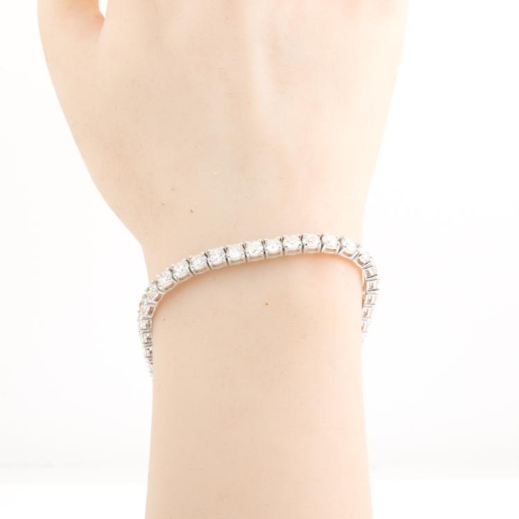 Diamond tennis bracelet with 40 round Natural Diamonds totalling 11.92ct (Estimated grading: I-J VS-SI). 18ct white gold. Length: 18cm. Weight: 16.1g. With Valuation Certificate #418848. (New)
