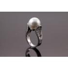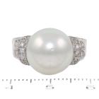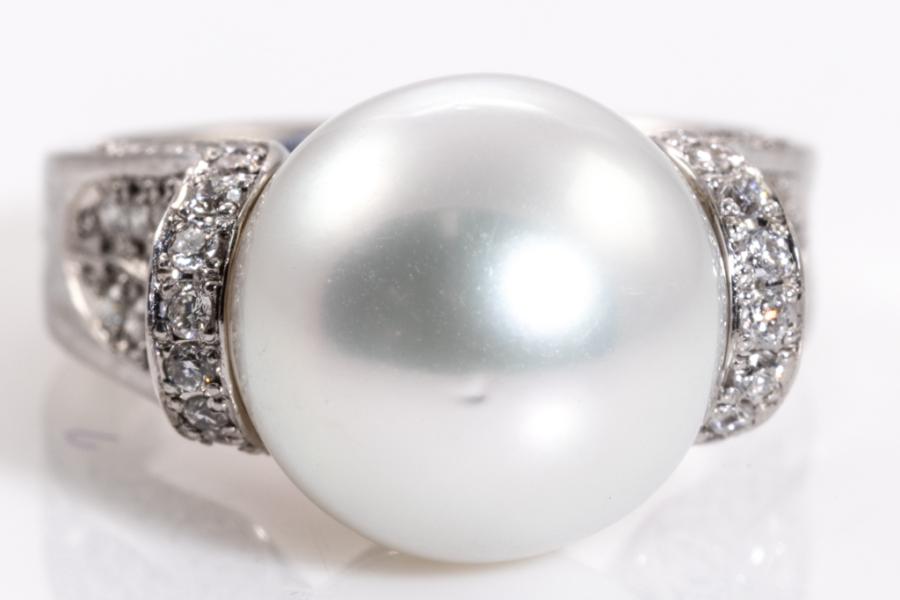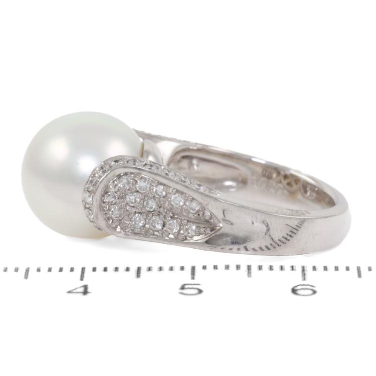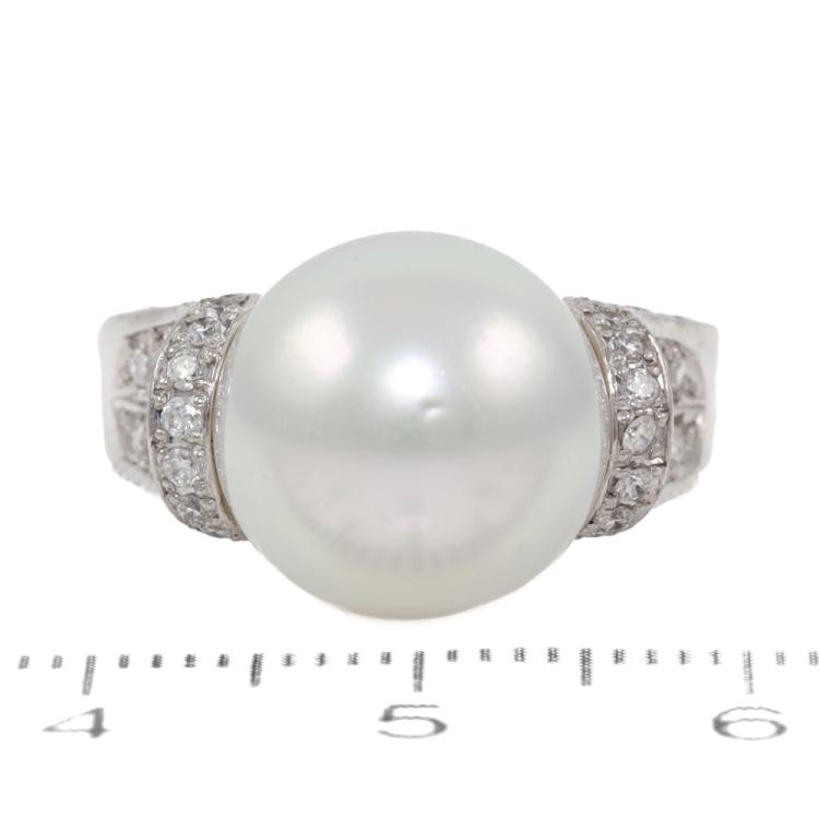 South Sea Pearl and Diamond ring with South Sea Pearl of 12.0mm and round Diamonds totalling 0.60ct (Estimated grading G-H SI). Platinum - 900. Ring size K1/2 - ring resizing is not recommended. Weight: 13.6g. (Pre-owned)