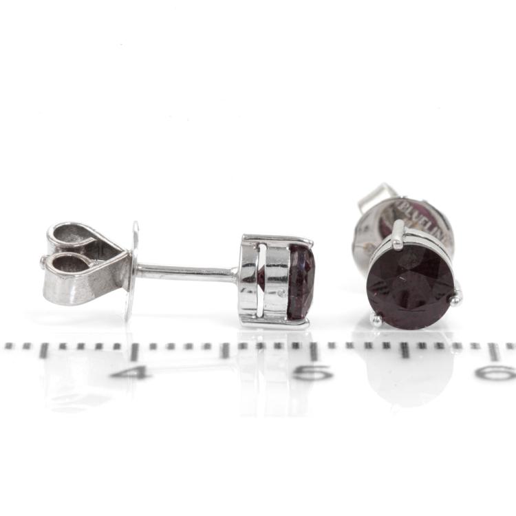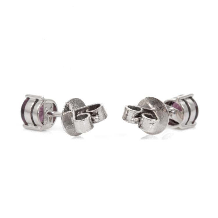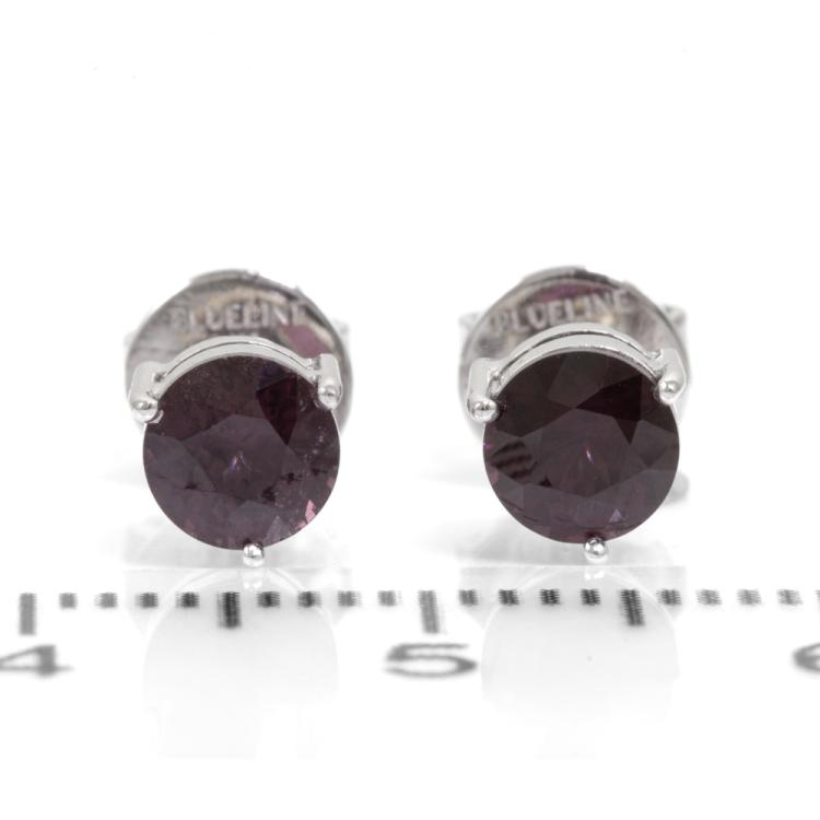 Spinel stud earrings with round dark pinkish purple Ceylon Natural Spinel totalling 1.23ct. 14ct white gold. Weight: 1.6g. With GGTL report #195908. (As new)^