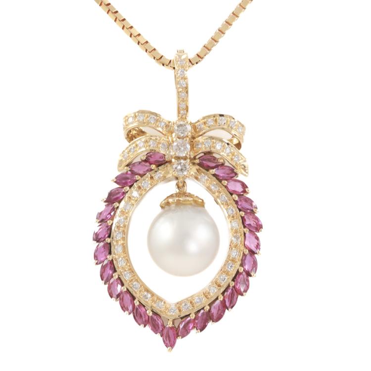 12.8mm Pearl, Ruby & Diamond Pendant