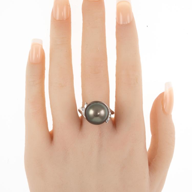 14.5mm Tahitian Pearl and Diamond Ring