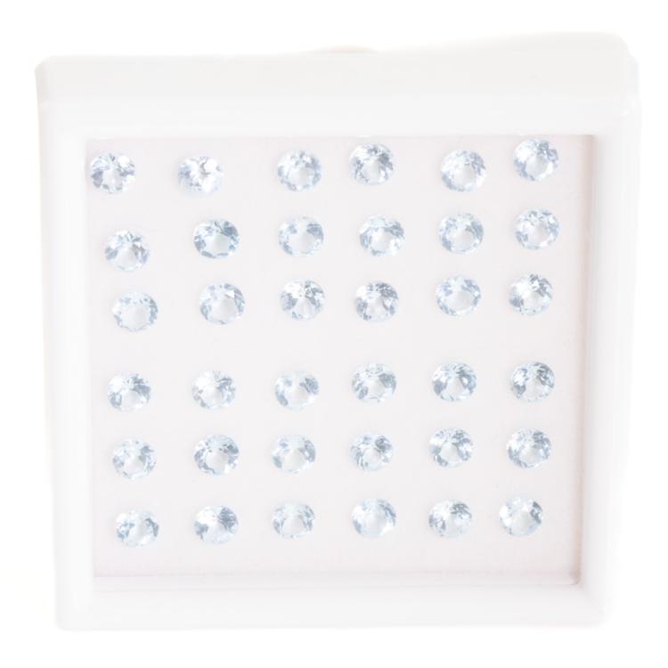 A loose parcel of 36 round blue Topaz totalling 15.00ct. Measuring approximately 4.4mm. (As new)
