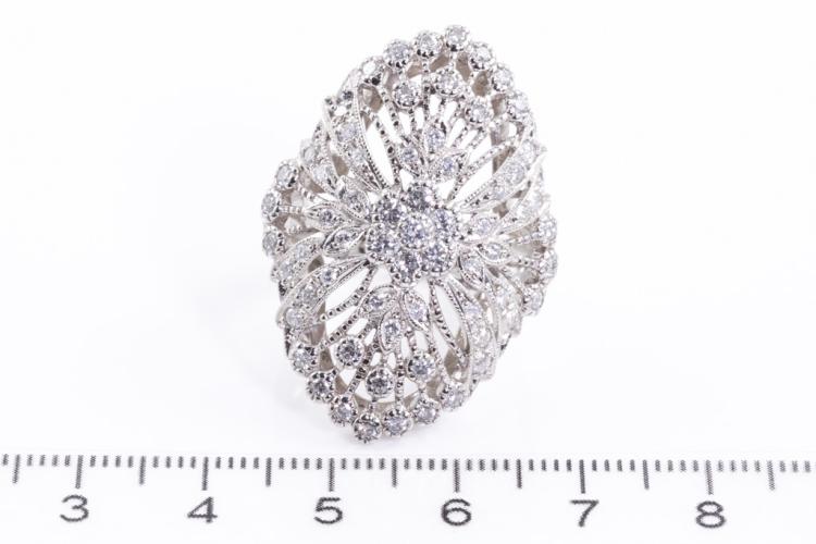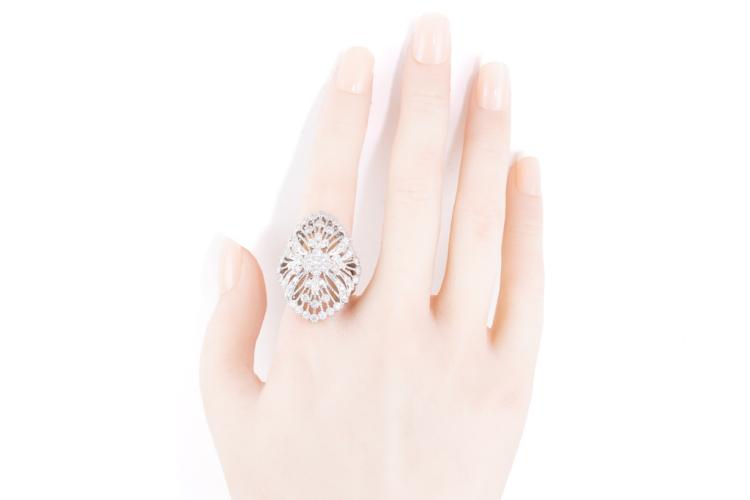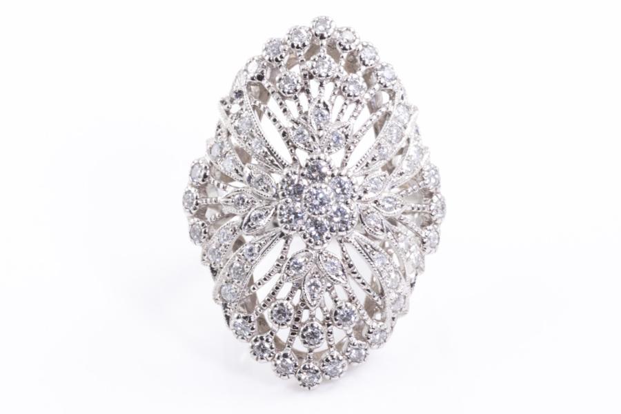 Diamond ring with Natural Diamonds totalling 1.50ct (Estimated grading: H-I SI). Platinum - 900. Ring size N. Band width: 7.95mm - 4.22mm. Weight: 19.8g. (Pre-owned)