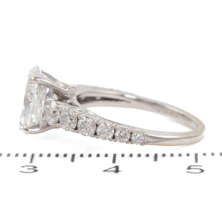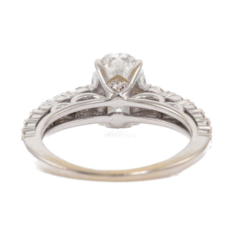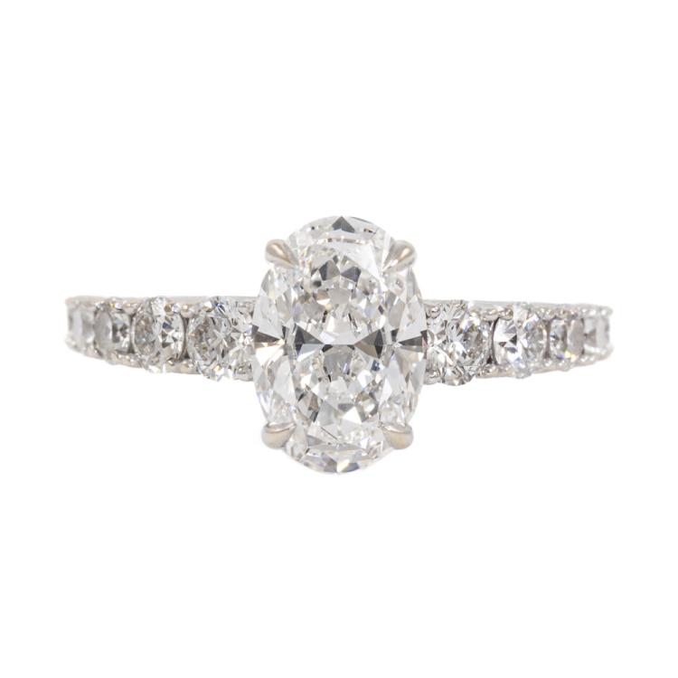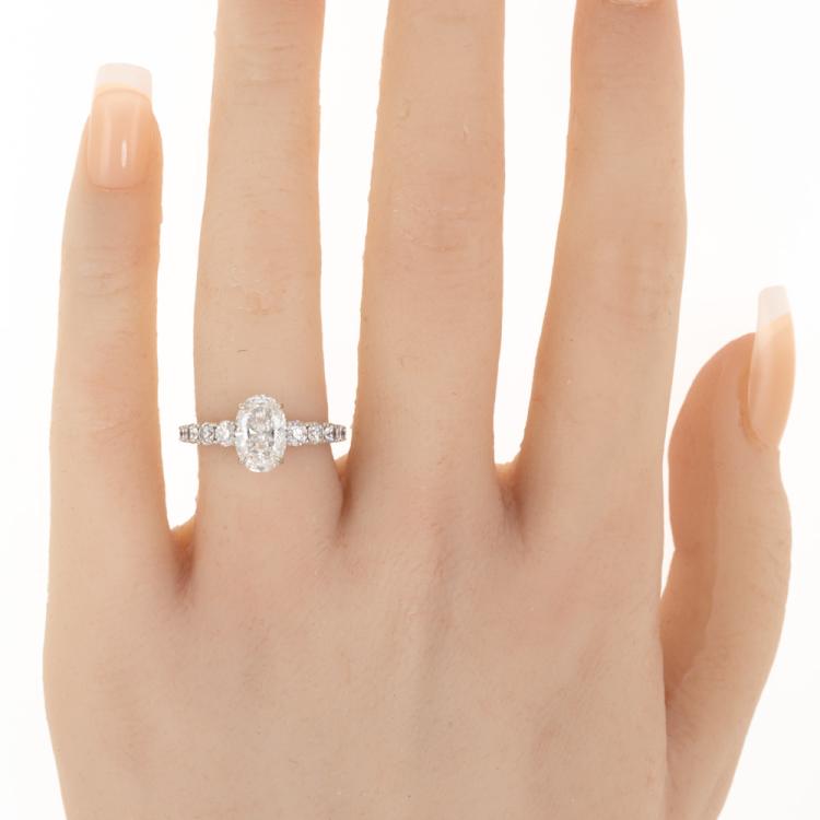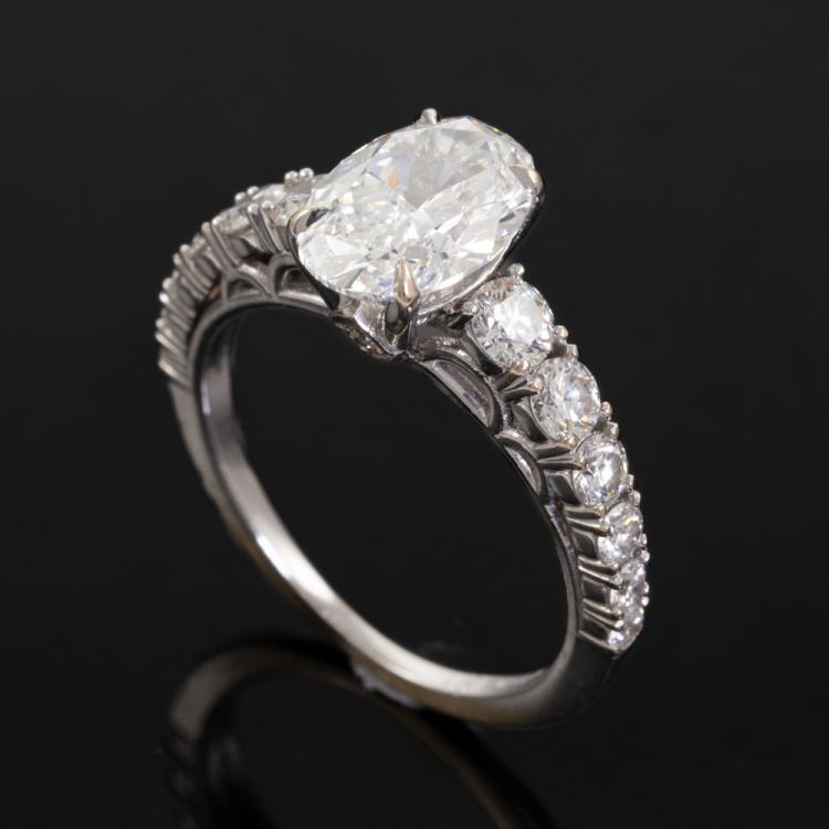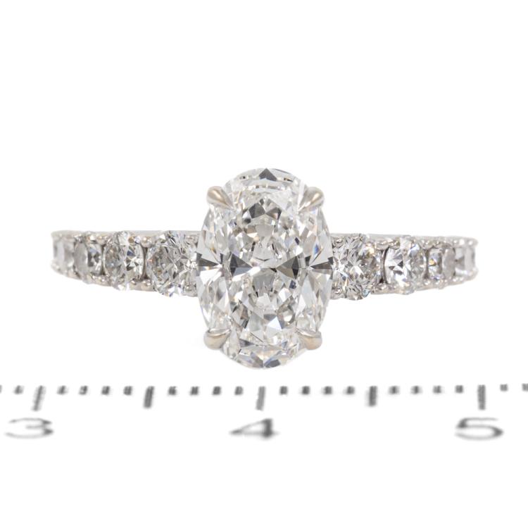 Diamond Solitaire ring with a centre oval shape Natural Diamond of 1.51ct (with Copy of GIA Report graded as F VS1 #2187907495) and round Natural Diamonds totalling 0.74ct (Estimated graded as G-H SI1). 18ct white gold. Ring size J. Band width: 1.1mm - 1.5mm. Weight: 3.3g. With Valuation ##000018019002. Note: The wight of the ring differs from what is stated on the Valuation Certificate may due to resizing. (Pre-owned)