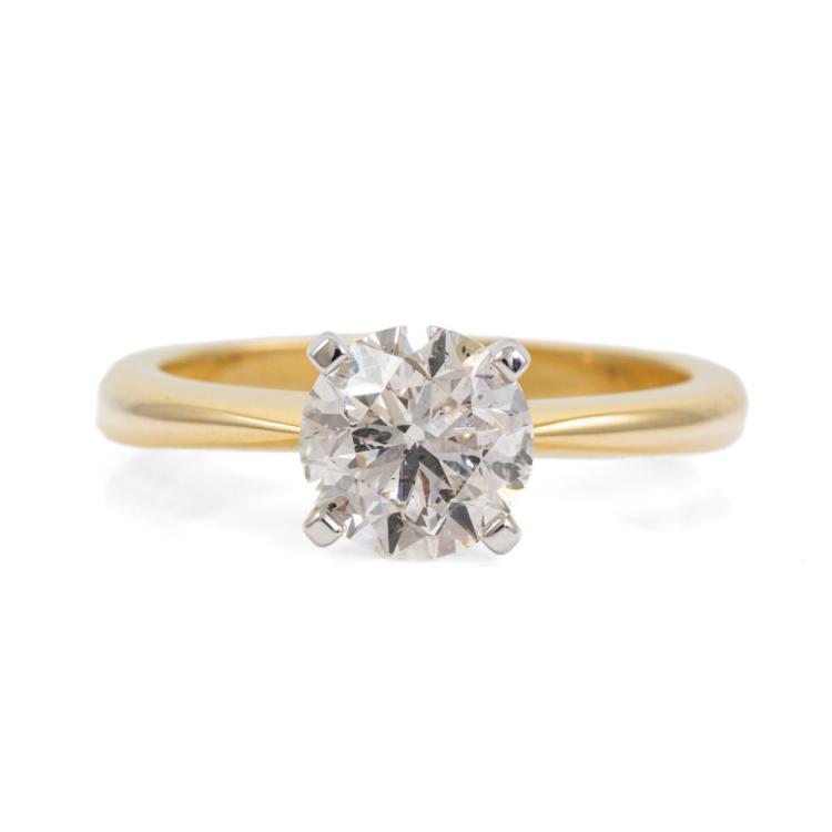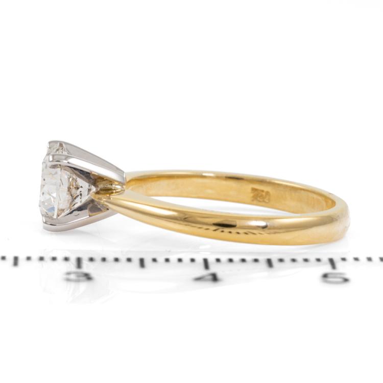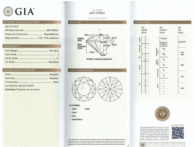 Diamond solitaire ring with round brilliant cut natural Diamond of 1.51ct (with GIA Report graded as J P1 #6451109061). 18ct white and yellow gold. Ring size: L3/4. Band width: 2.6mm - 1.7mm. Weight: 4.5g. (New)