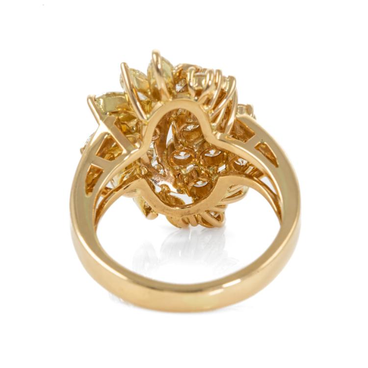 Diamond Dress ring with round & marquise cut Natural Diamonds totalling 1.65ct (Estimated grading: G-H SI & L-M SI). 18ct yellow gold. Ring size J. Band width: 3.8mm - 2.8mm. Weight: 7.4g. (Pre-owned).
