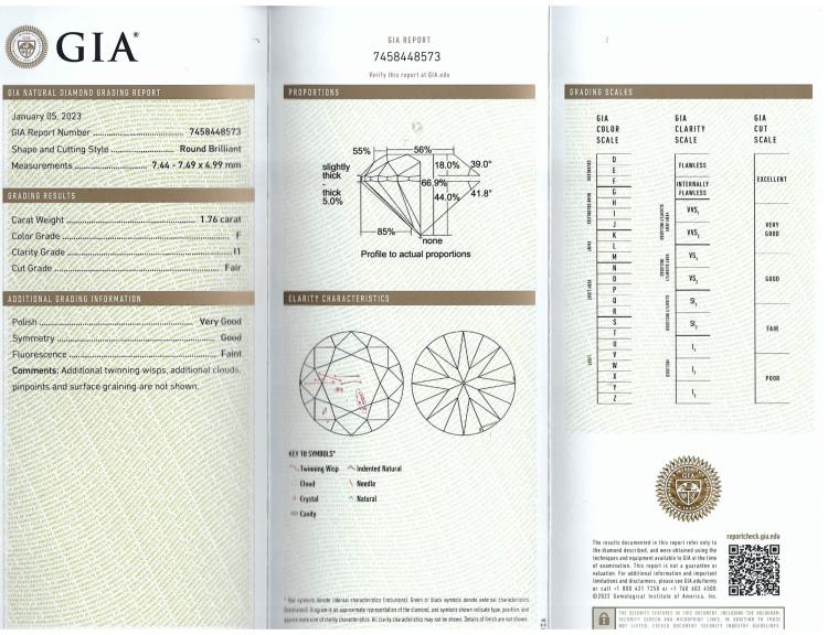 1.76ct Round Diamond Pendant GIA F Colour