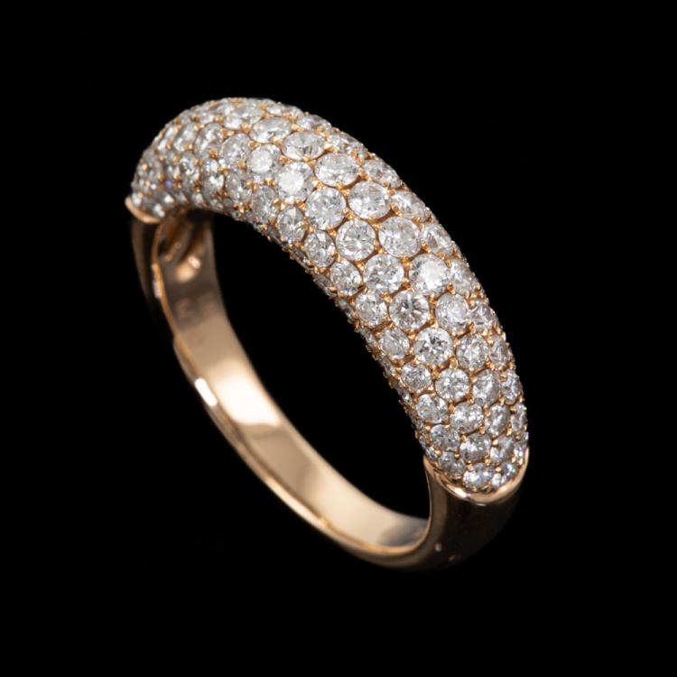 Diamond dress ring with round natural Diamonds totalling 1.79ct (Estimated grading: H SI). 18ct rose gold. Ring size O1/2 - ring resizing is not recommended. Band width: 3.0mm - 4.8mm. Weight: 5.3g. (Pre-owned)