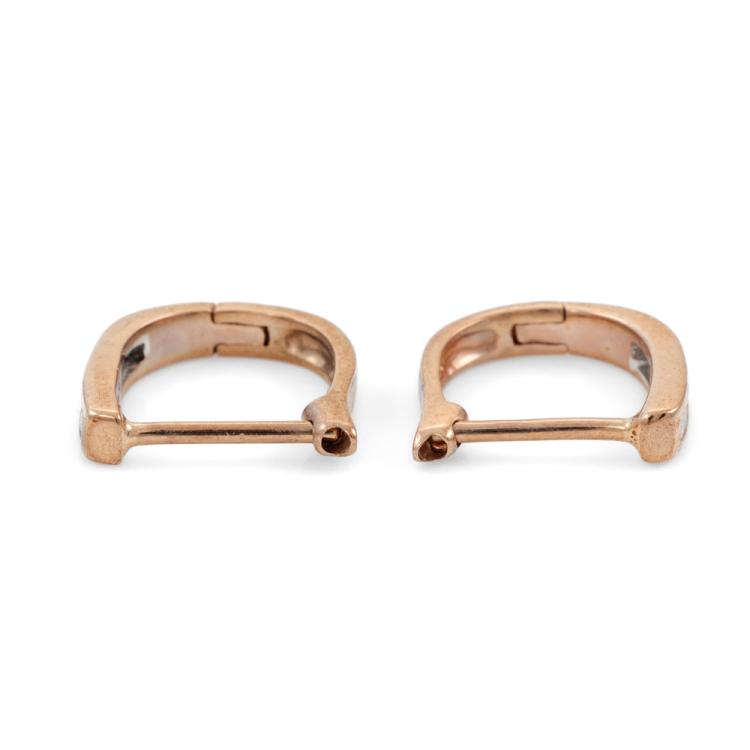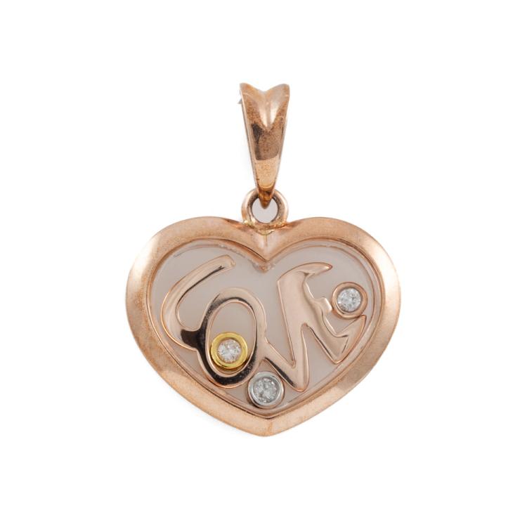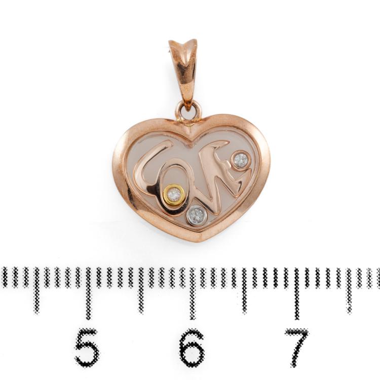 2 Piece Set: 1) Diamond huggie earrings with round Natural Diamonds totalling 0.10ct. 9ct rose gold. 2) Diamond love heart pendant with round floating Natural Diamonds totalling 0.10ct. 9ct yellow, white & rose gold. No chain provided. Combined weight of 3.8g. (As new)