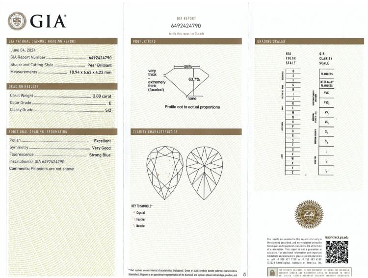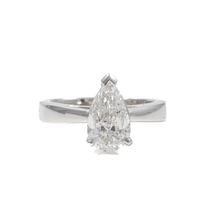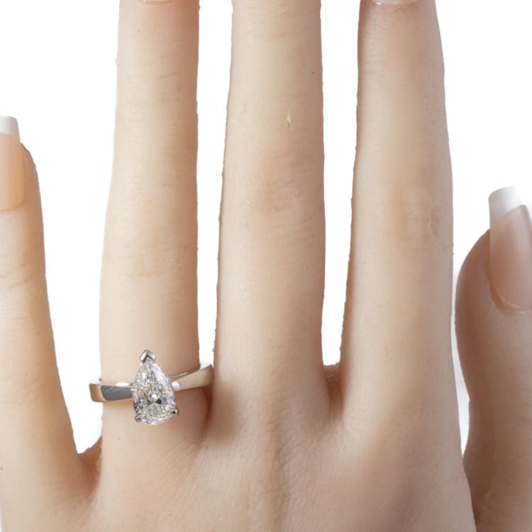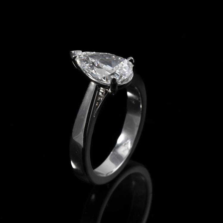 Diamond solitaire ring with pear shape natural Diamond of 2.00ct (With GIA Report graded as E SI2 #6492424790). Platinum 950. Ring size L. Band width: 3.3mm - 3.1mm. Weight 9.1g. (New)