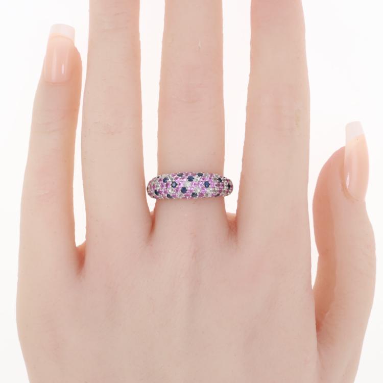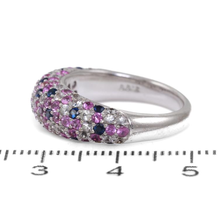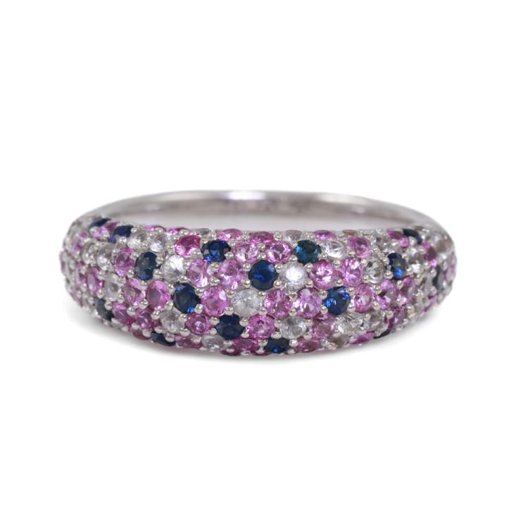 Sapphire ring with round Natural white, pink & blue Sapphires totalling 2.00ct. 18ct white gold. Ring size: M - ring resizing is not recommended. Band Width: 3.1mm-4.4mm. Weight: 6.3g. (Pre-owned)