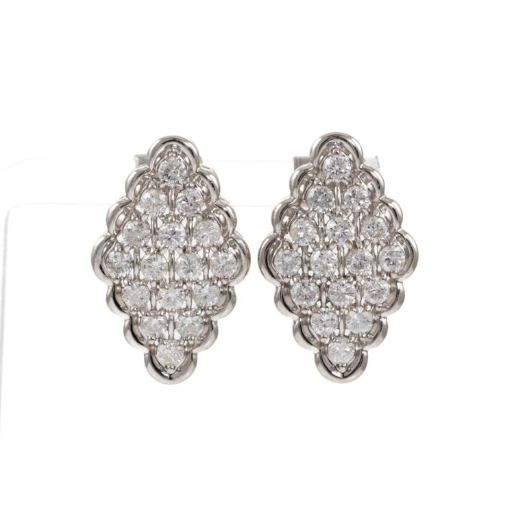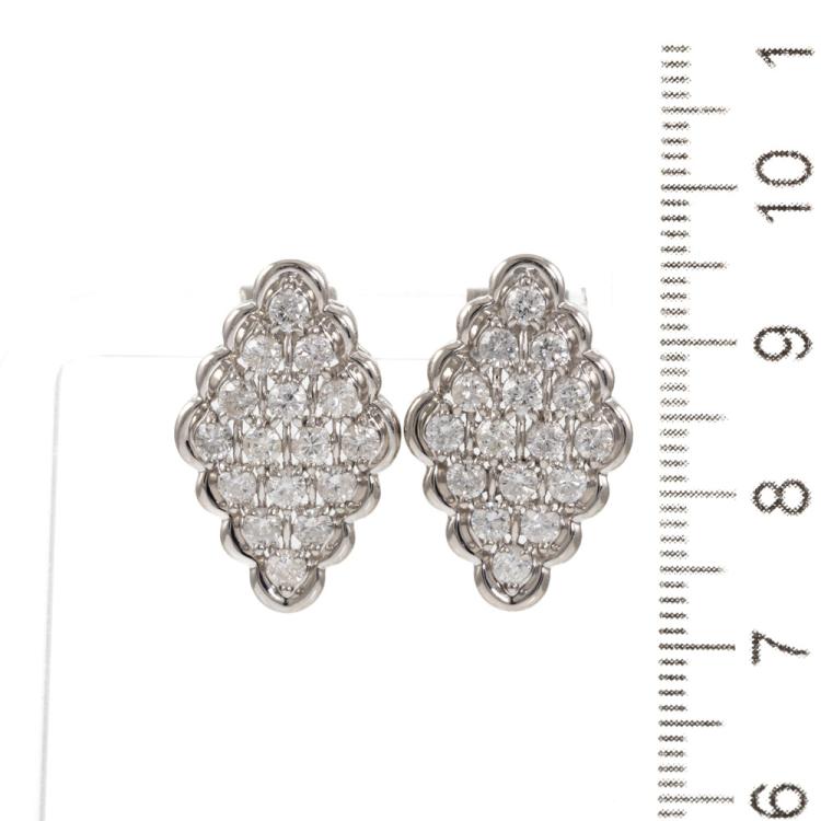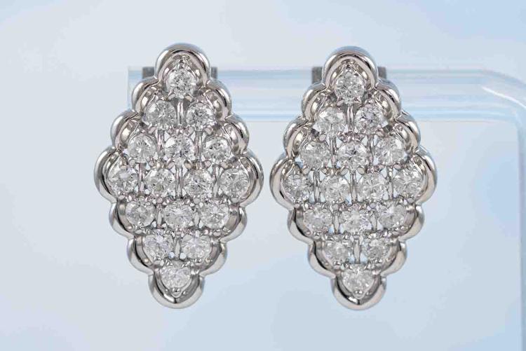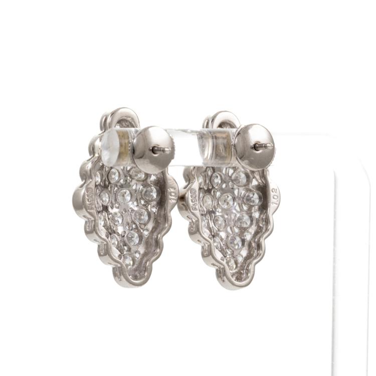 Diamond dress earrings with round natural Diamonds totalling 2.03ct (Estimated grading: G-H SI-P1). Platinum 900 with platinum 955 guardian backs. Weight: 9.7g. (Pre-owned)