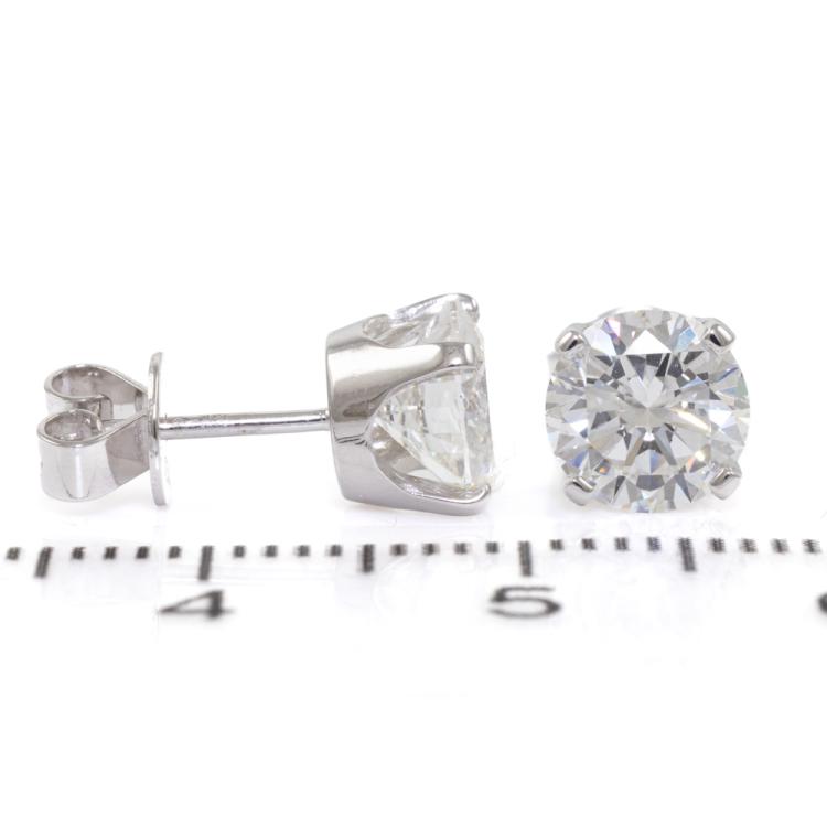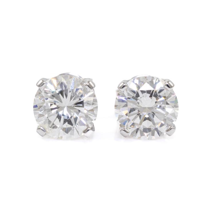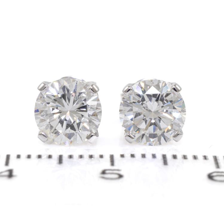 Diamond studs with 2 round brilliant cut Natural Diamonds totalling 2.22ct (with GIA Reports graded as G SI1 #7491034853 & G VS2 #1488833080). 18ct white gold. Weight: 2.4g (New)