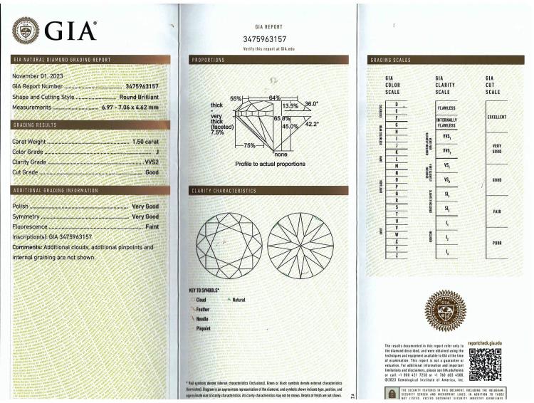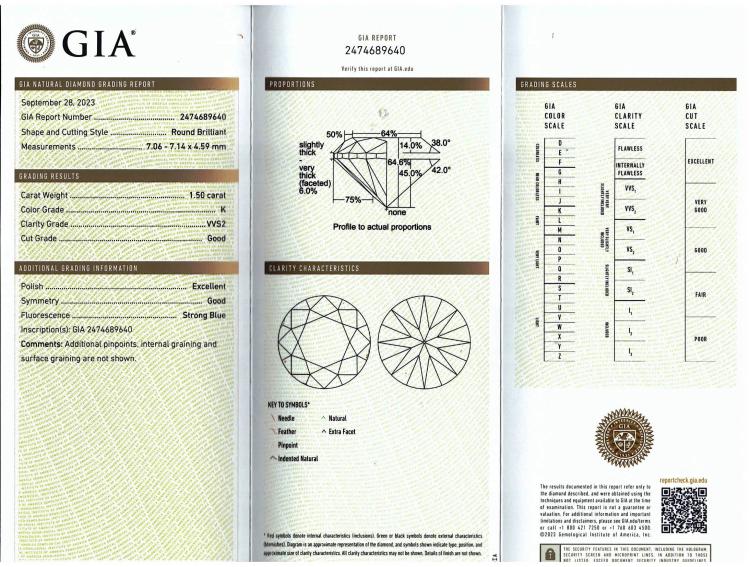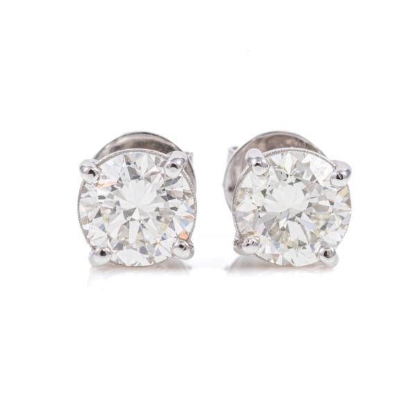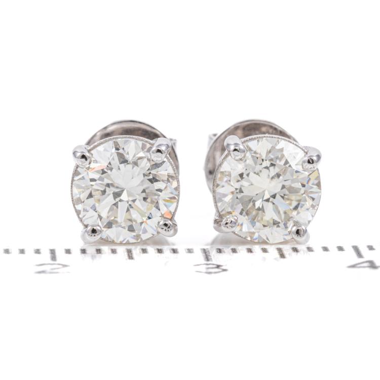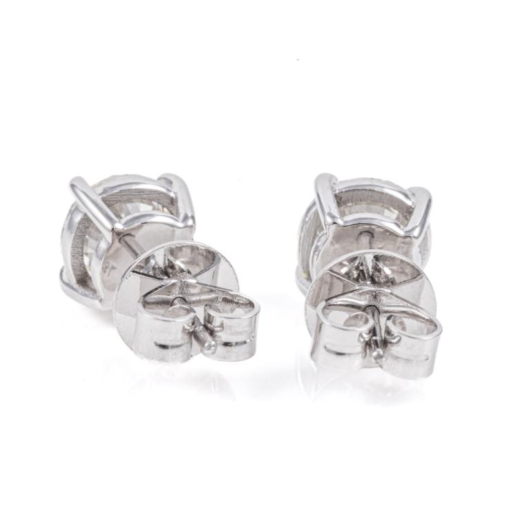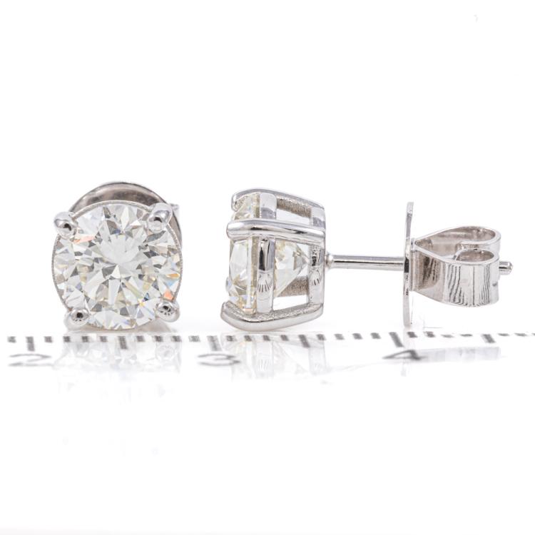Diamond studs with 2 round brilliant cut Natural Diamonds totalling 3.00cts (with GIA Reports graded as J VVS2 & K VVS2, #3475963157, 2474689640). 18ct white gold. Weight: 3.5g (New)